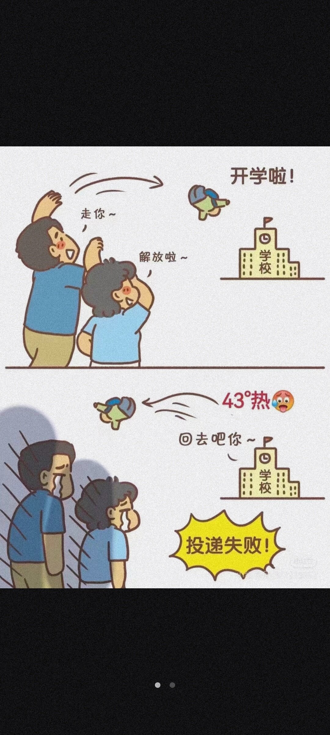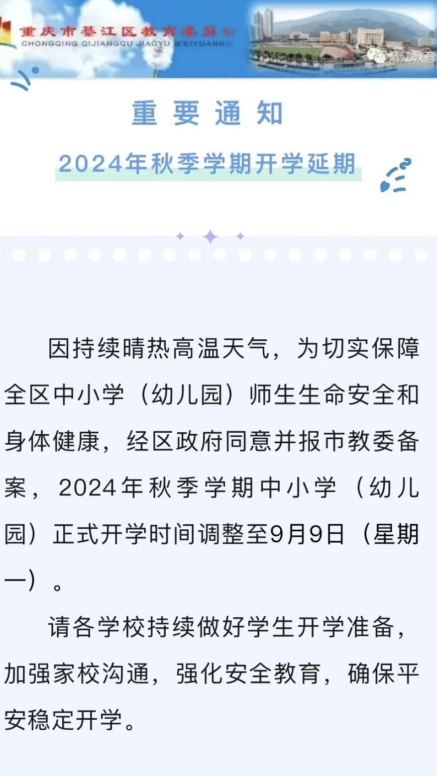 我们加上放假前发烧请假了三天一共74天的暑假,再延迟开学我都要疯了。早点送学校吧,家长的命也是命啊