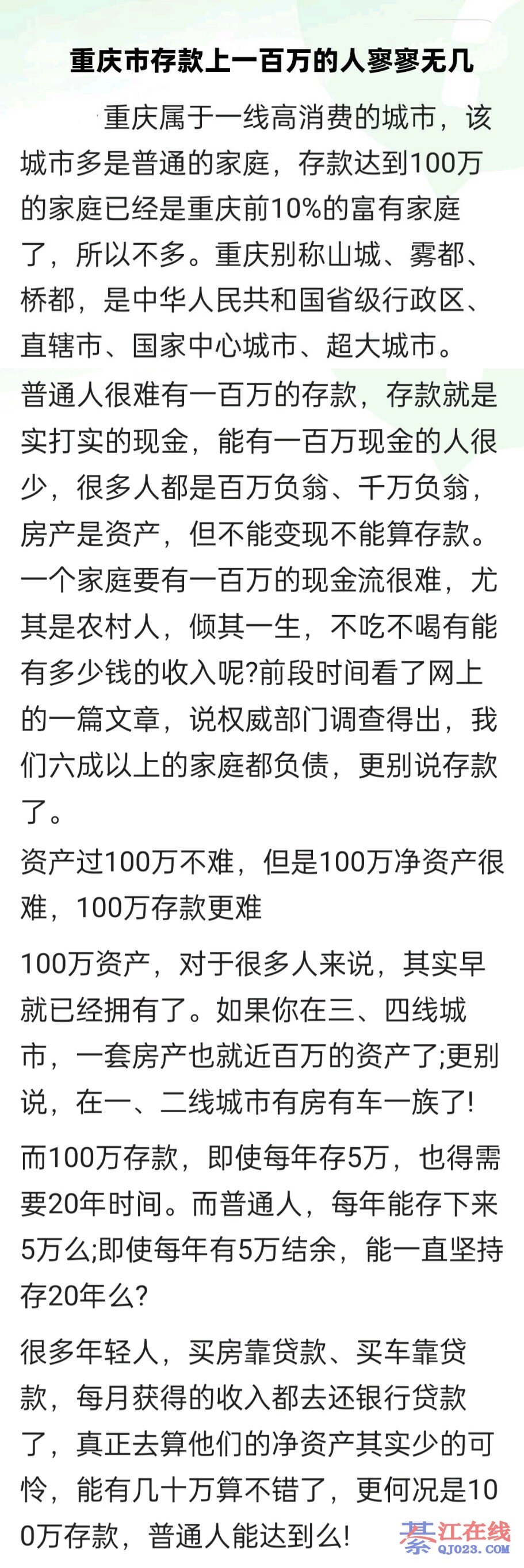 綦江区,存款上100万的最多不足100人。你可以上度娘查一查。
