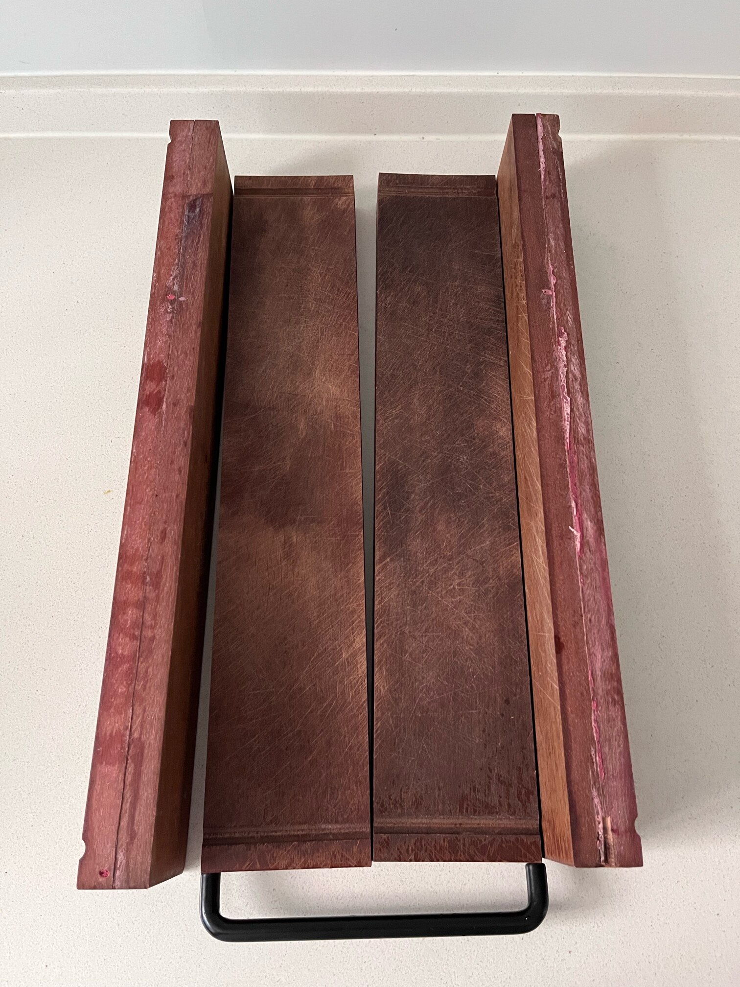 这菜板本来就是拼板而非整板,它只是靠胶水沾上去的,本来应当做木工的榫卯结构才不裂开,但这菜板看着也很差啊...当然,什么木并没看出来...