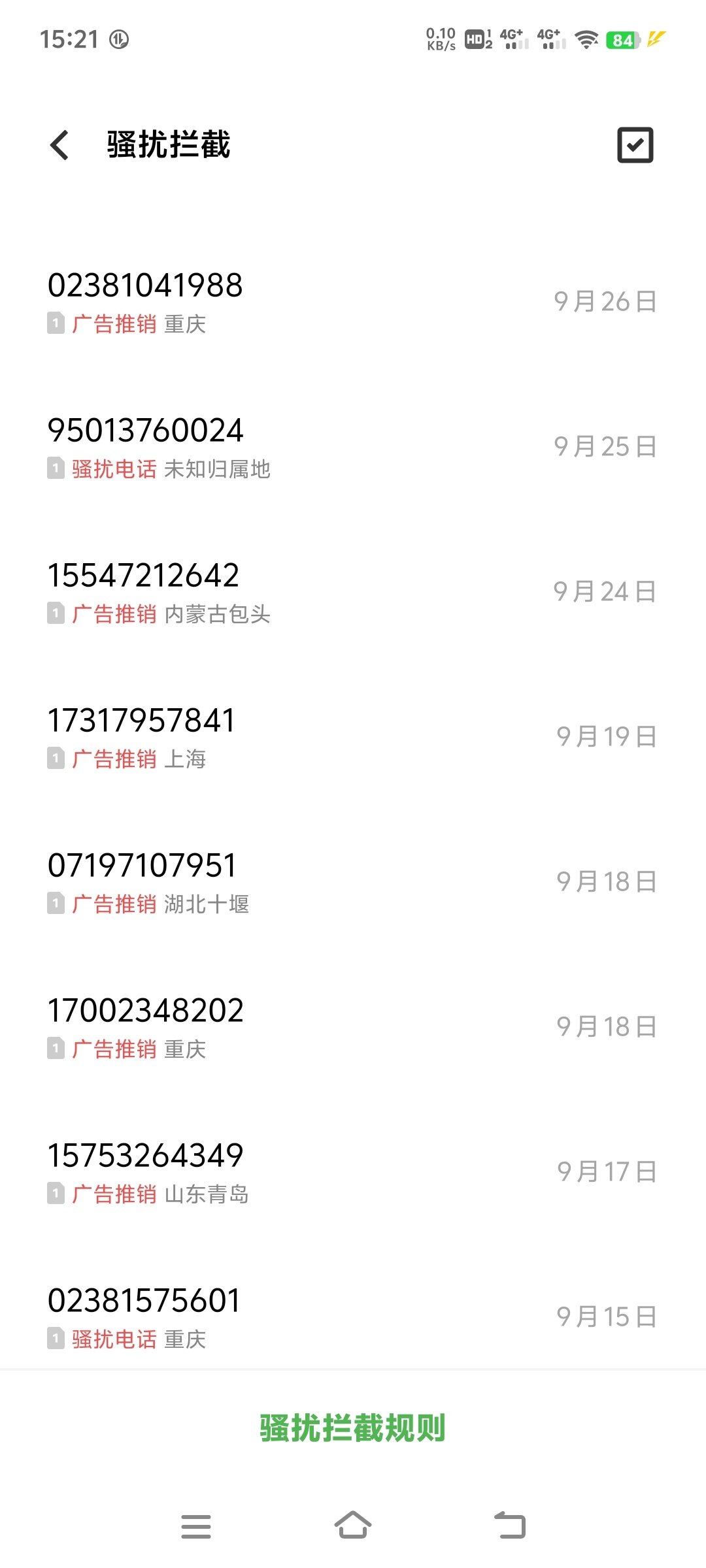 我们一天拦截几十个骚扰电话,每天都有,想不通那些诈骗电话,推销的天天打个不停又打不通,还那么执着,