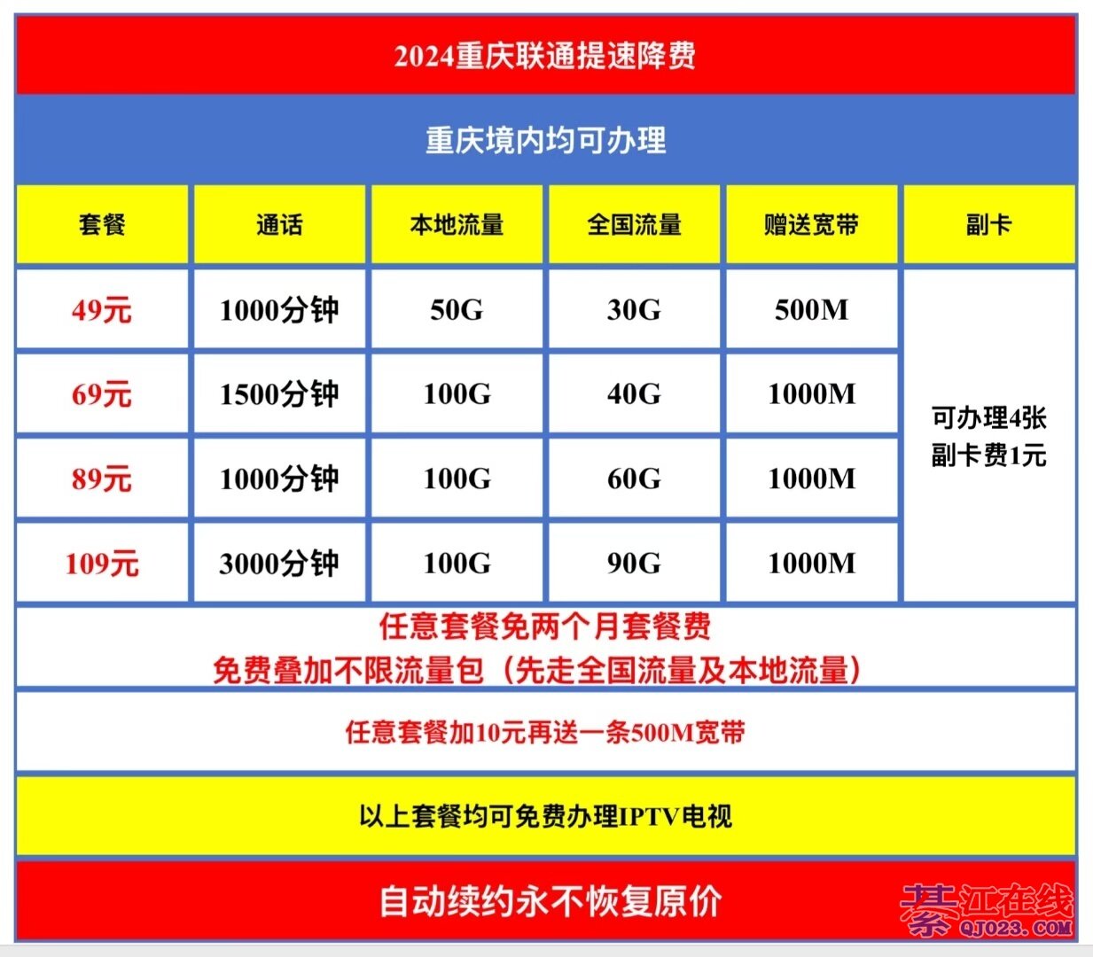 找我果断转网,109+25=134 2条宽带。4张卡,2000分钟190G流量,不变号码。