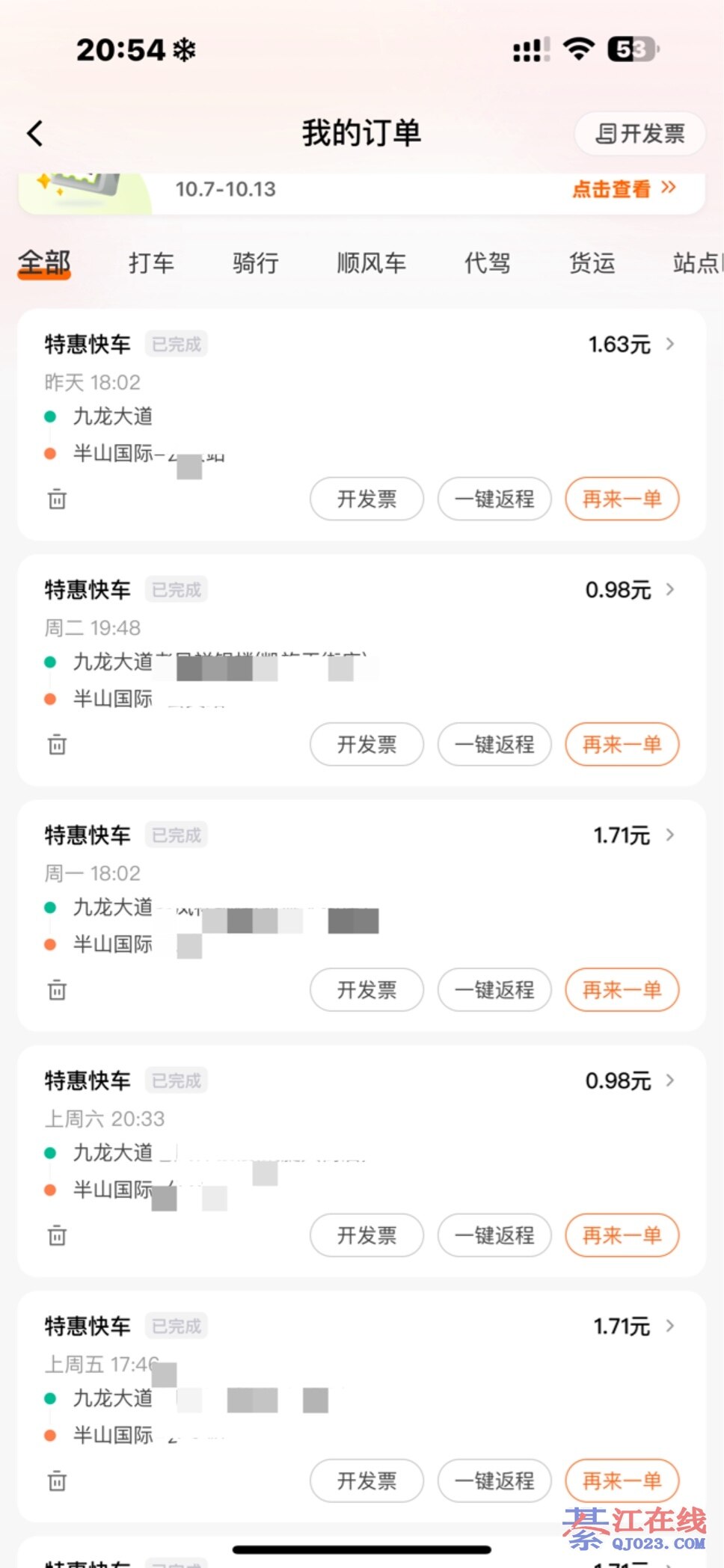 反正我就配坐一块多钱的车