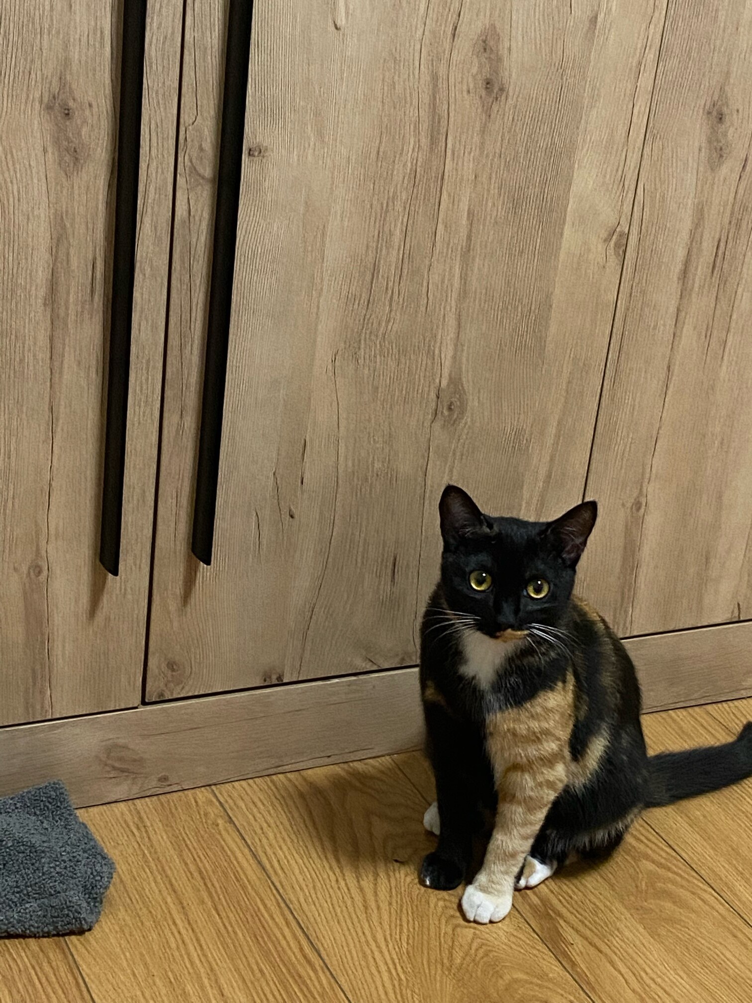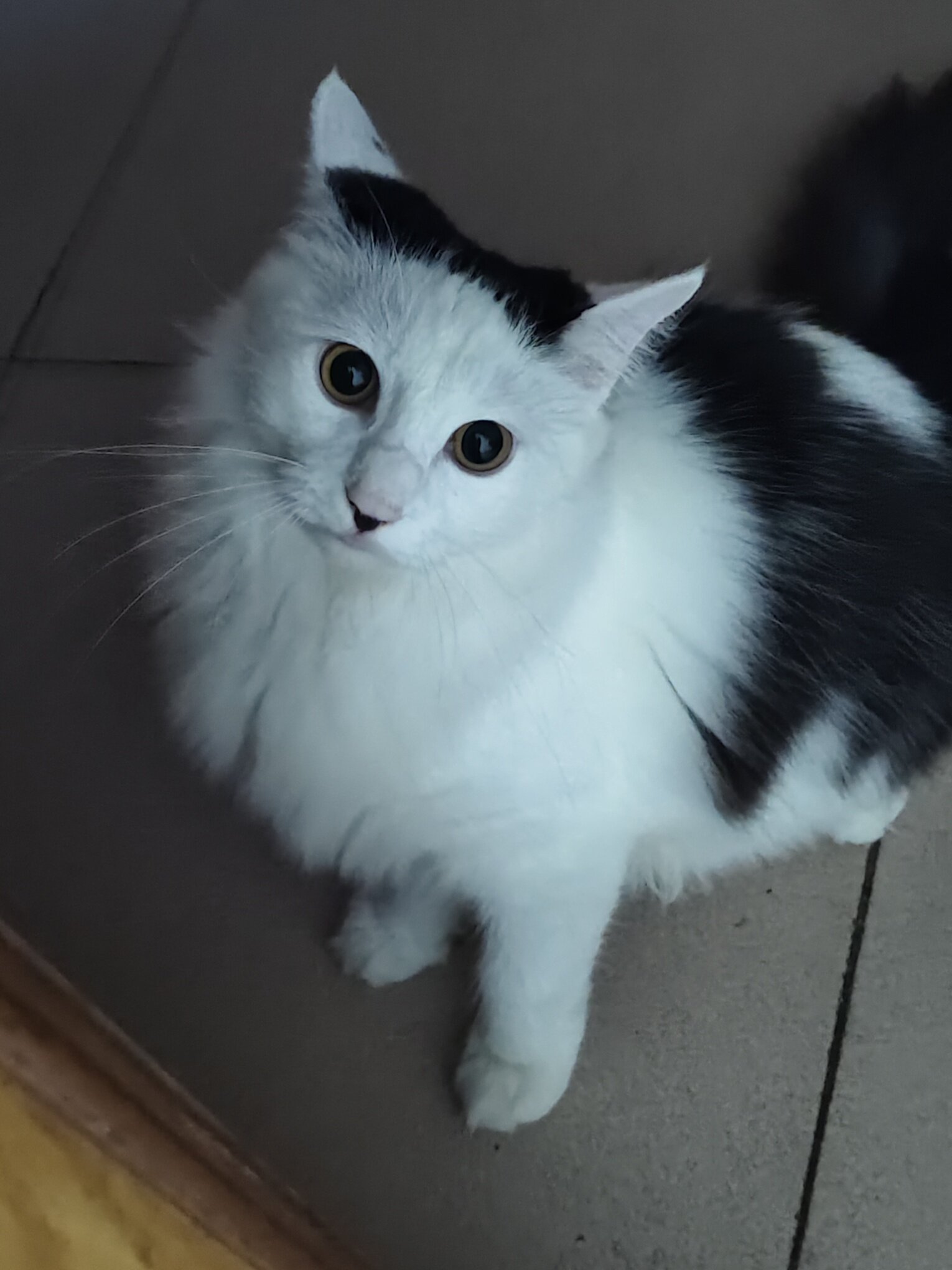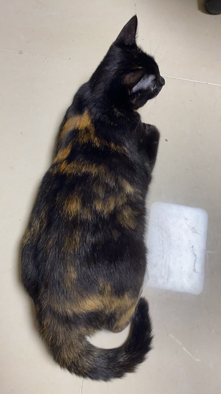 前天我在重庆没回来,今天回来了晚上一出去找,一唤她,马上就喵回应我了。找到了找到了 上眼皮摔了条口子都结痂了 更像黑色灰了