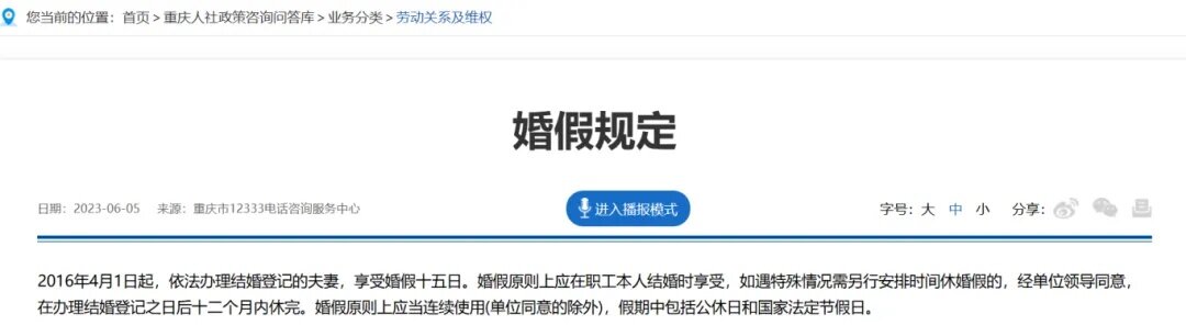 标题: 重庆婚假/年休假待遇规定!綦友们赶紧收藏!看看你有几天假