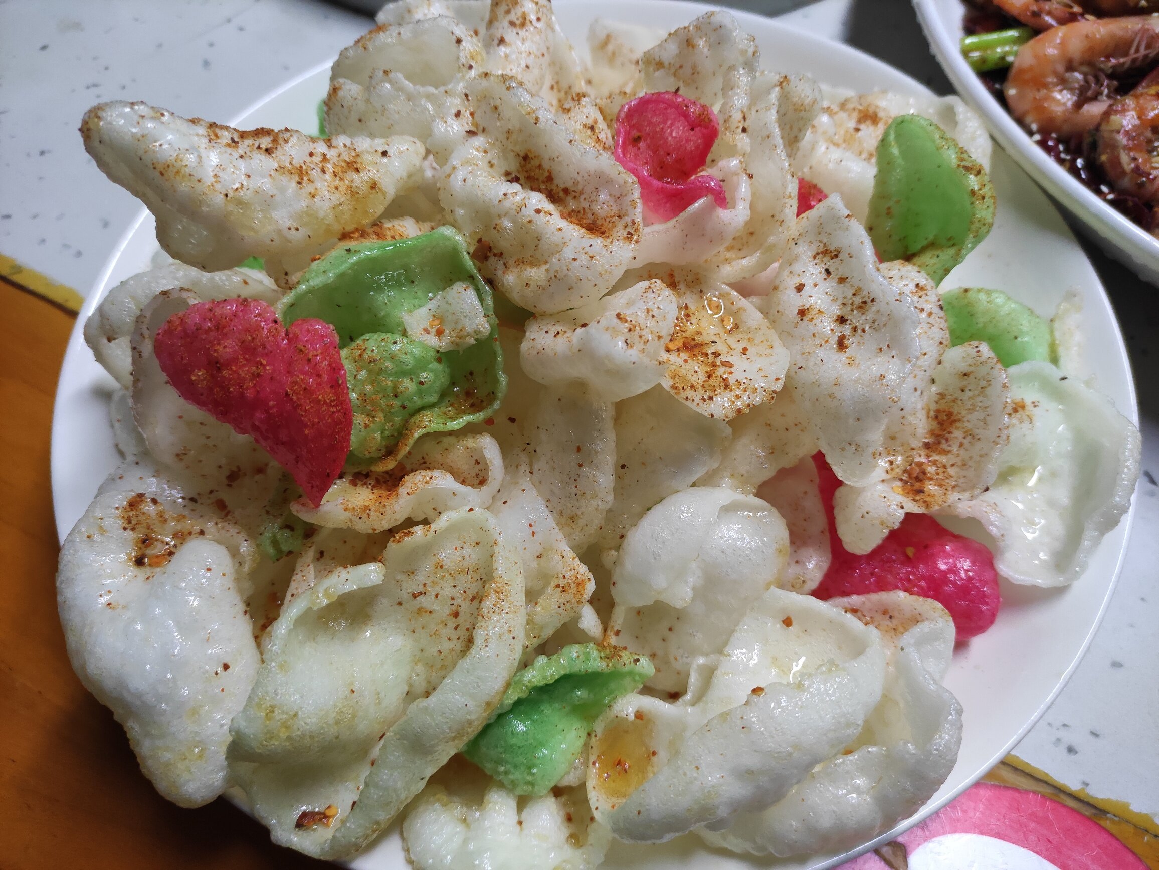 最后那个虾片上面洒的海椒面迈?