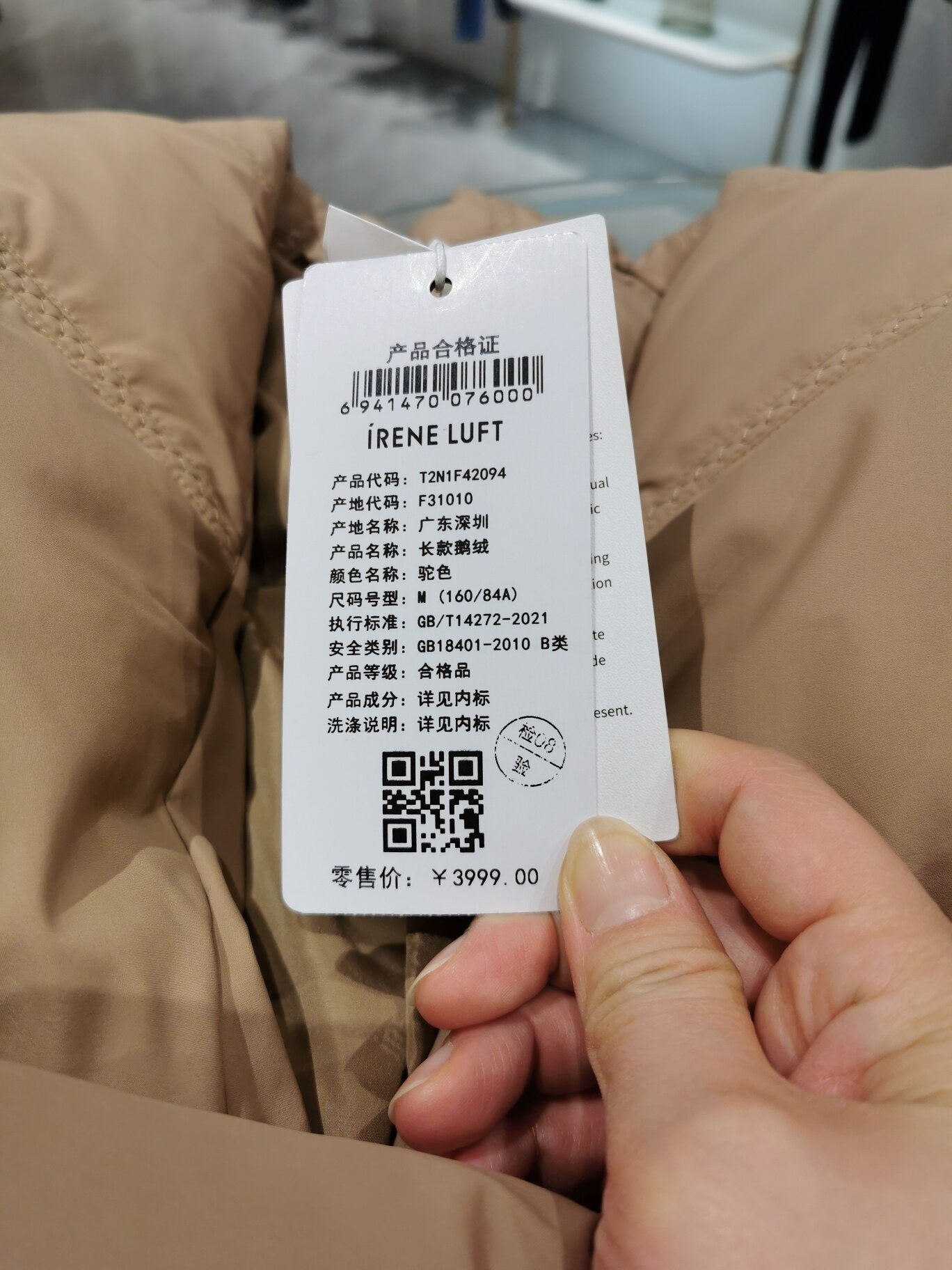 该穿的时候小心点把牌子取下来噻,牌子上的绳绳不要弄断了,感觉不舒服把牌子给它弄上去,脏的小心给它处理哈,应该就退得倒