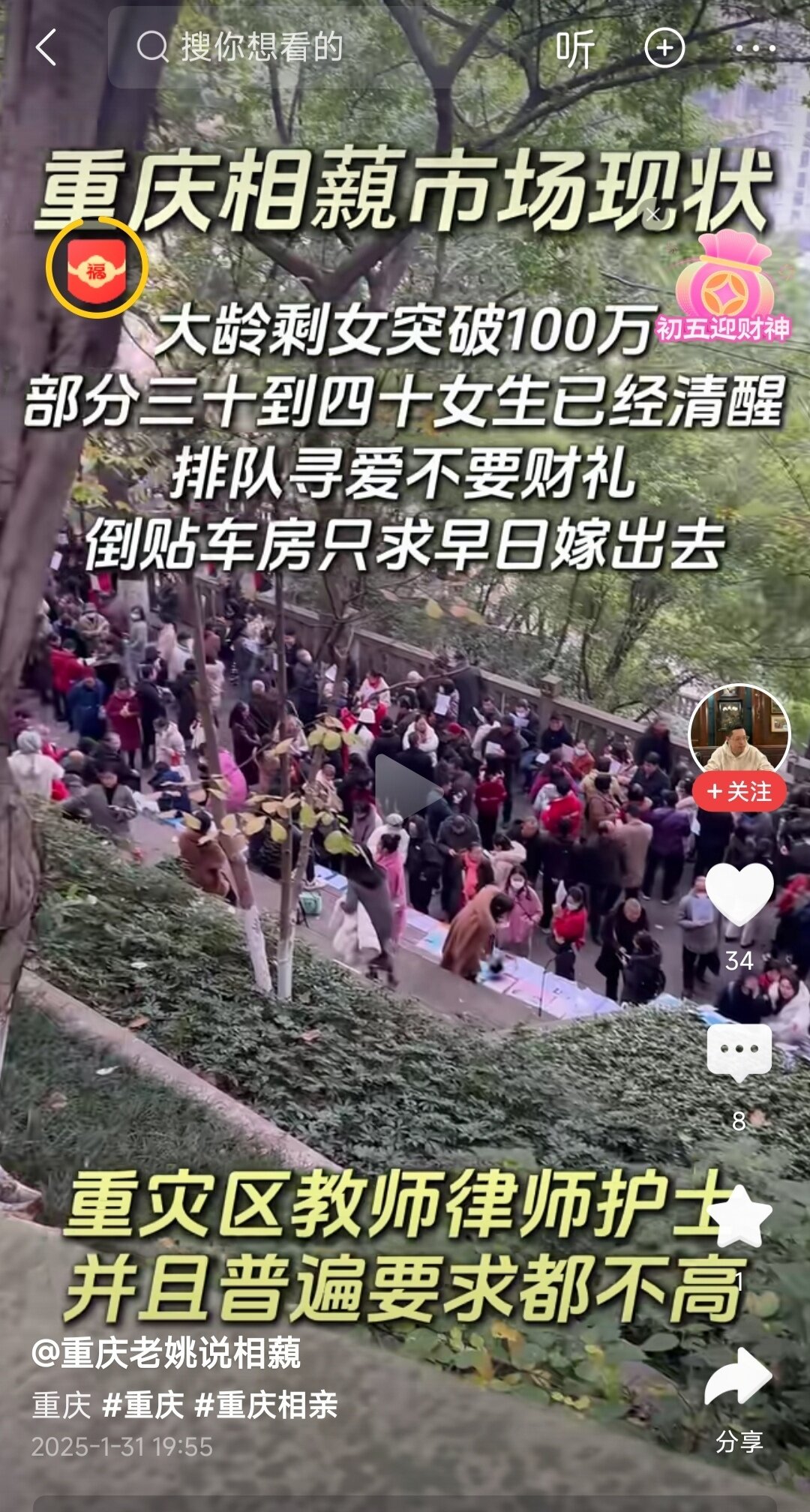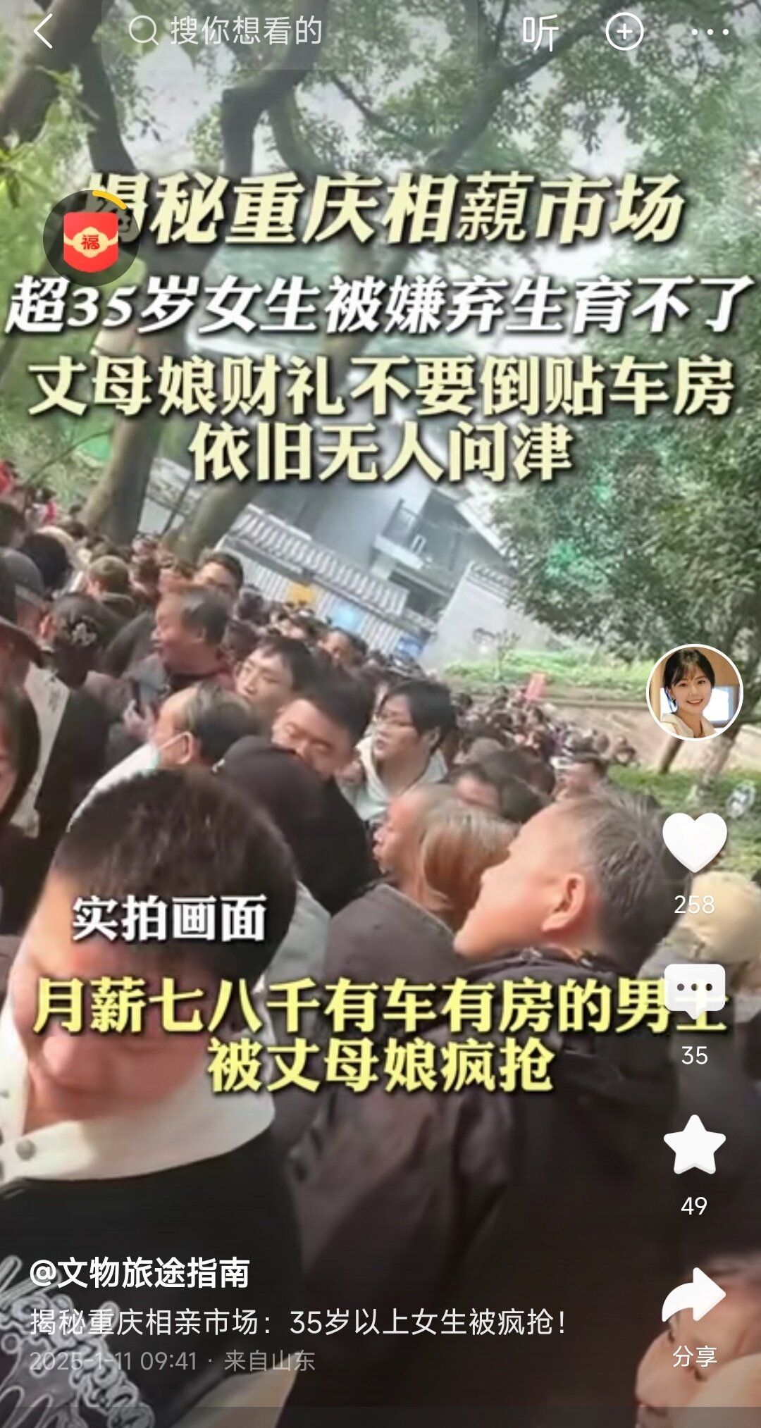 没有用的相亲角,家长打发时间消除寂寞的人民公园,不信你去试试,家长开场白直问,工作,收入,房子,户口,像审判一样