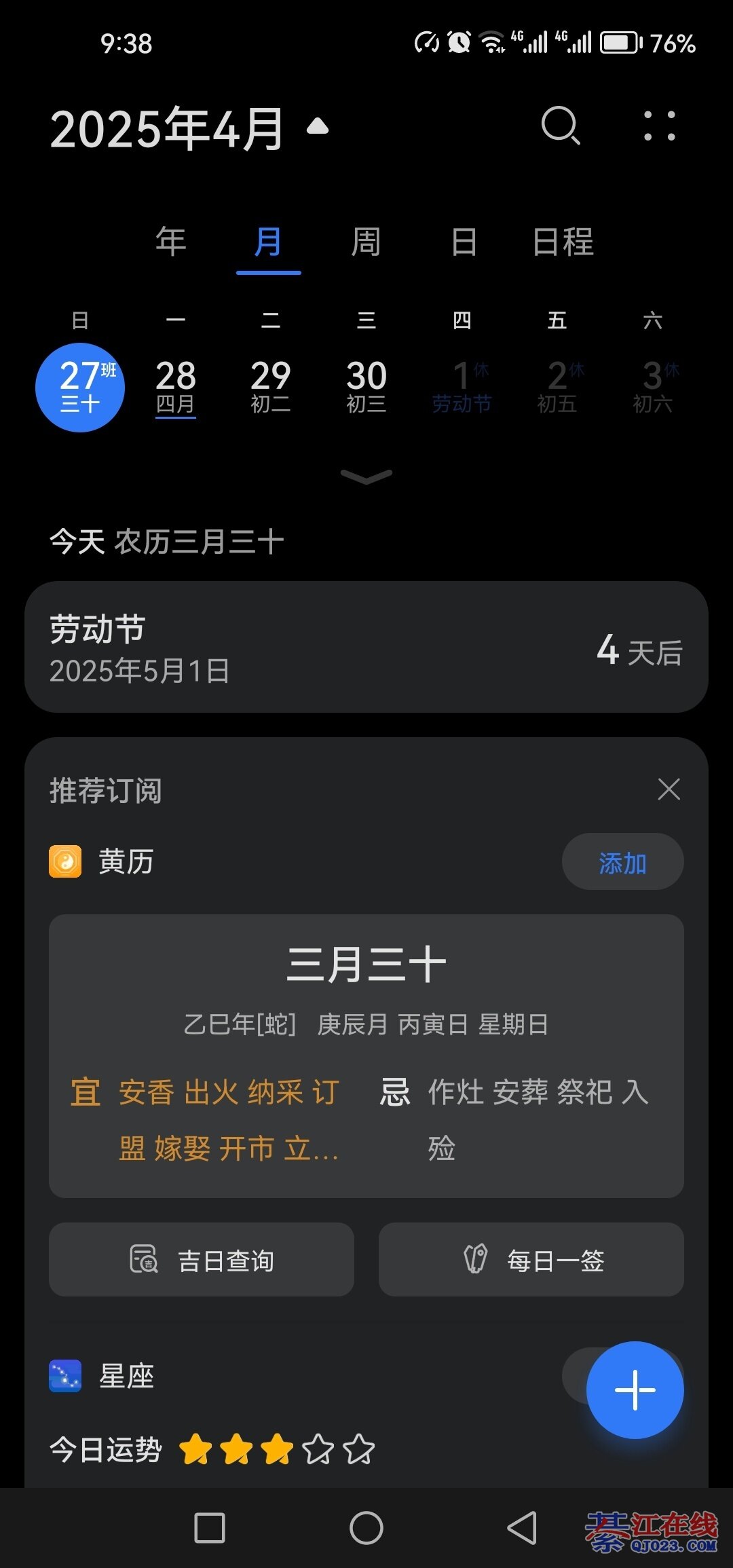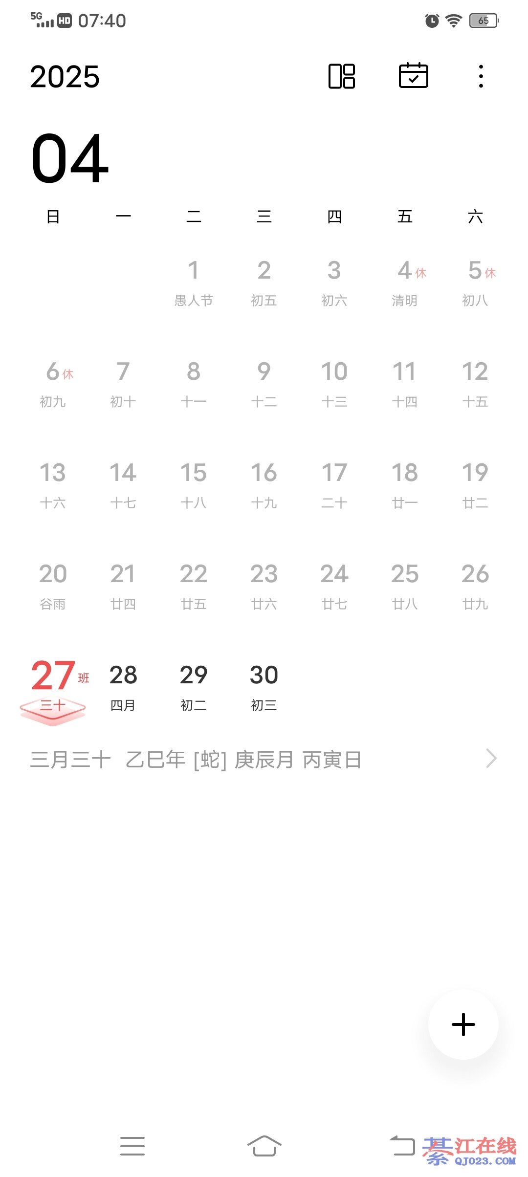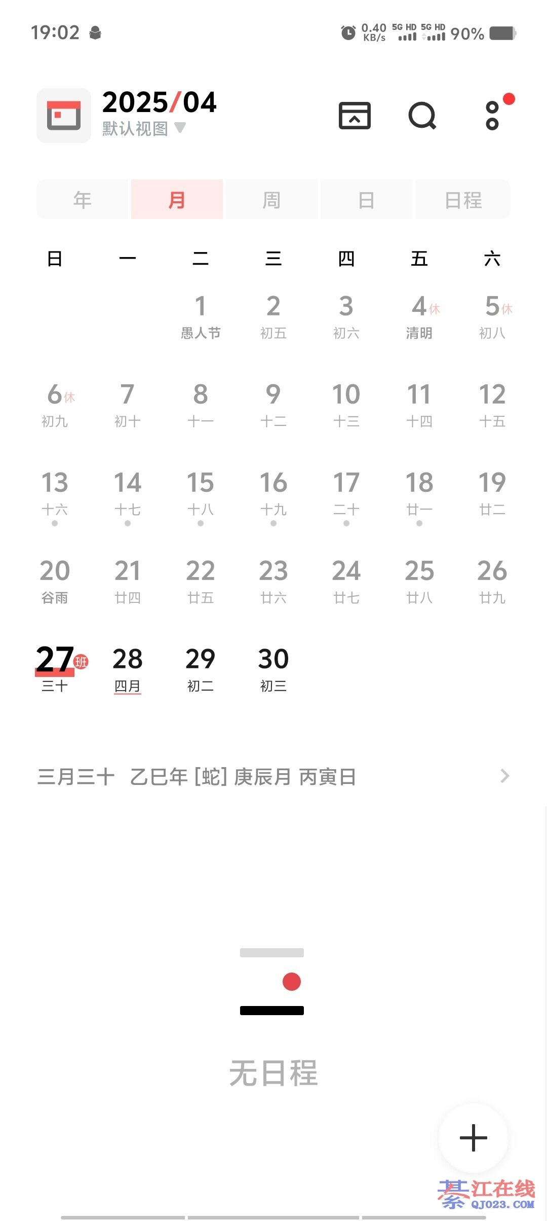 我的是手环上显示四月初一,手机日历是三月三十日