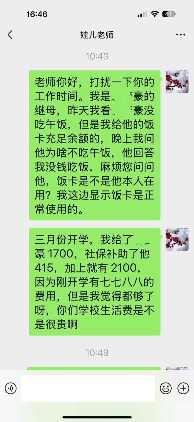 首先呢我觉得你不应该自称继母,其次让老师去问开销会让他难堪,最后呢我不看好你们未来关系的发展走向,务必多为自己做考虑。