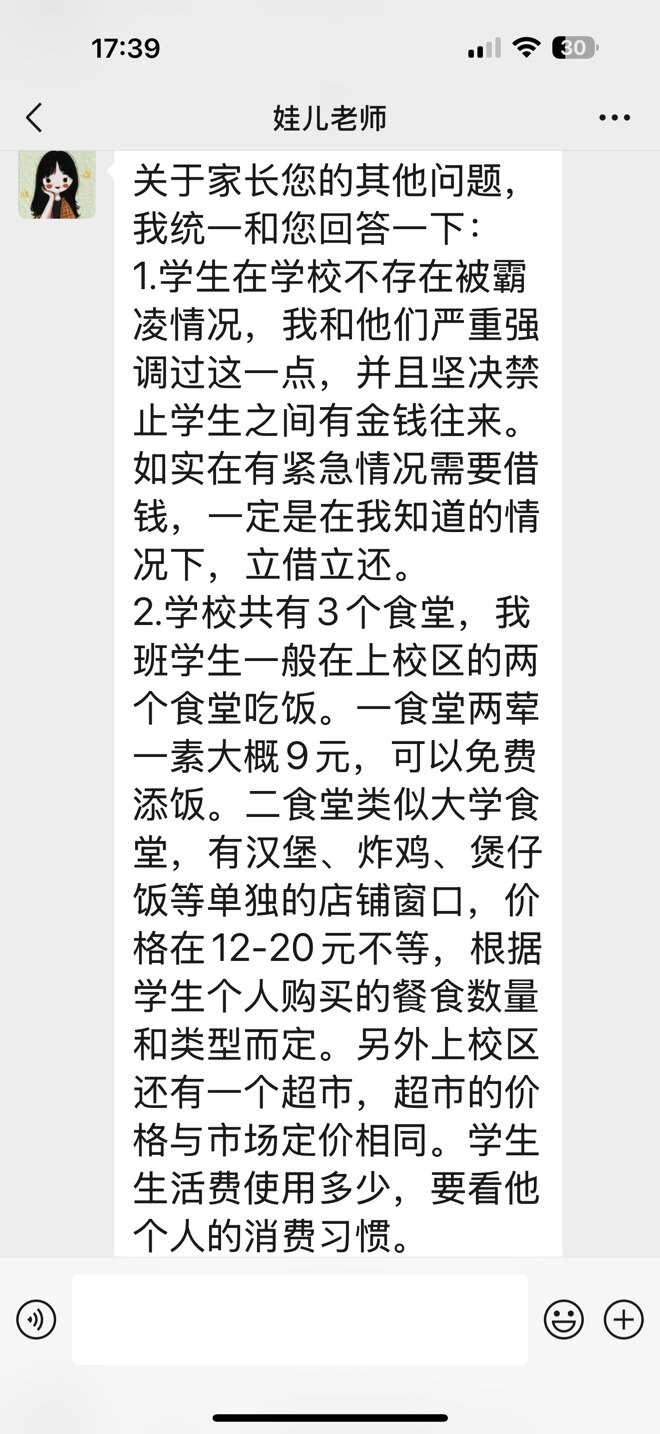 和娃及老师多沟通,是不是需要缴其他费用,娃也没说清楚只是要钱