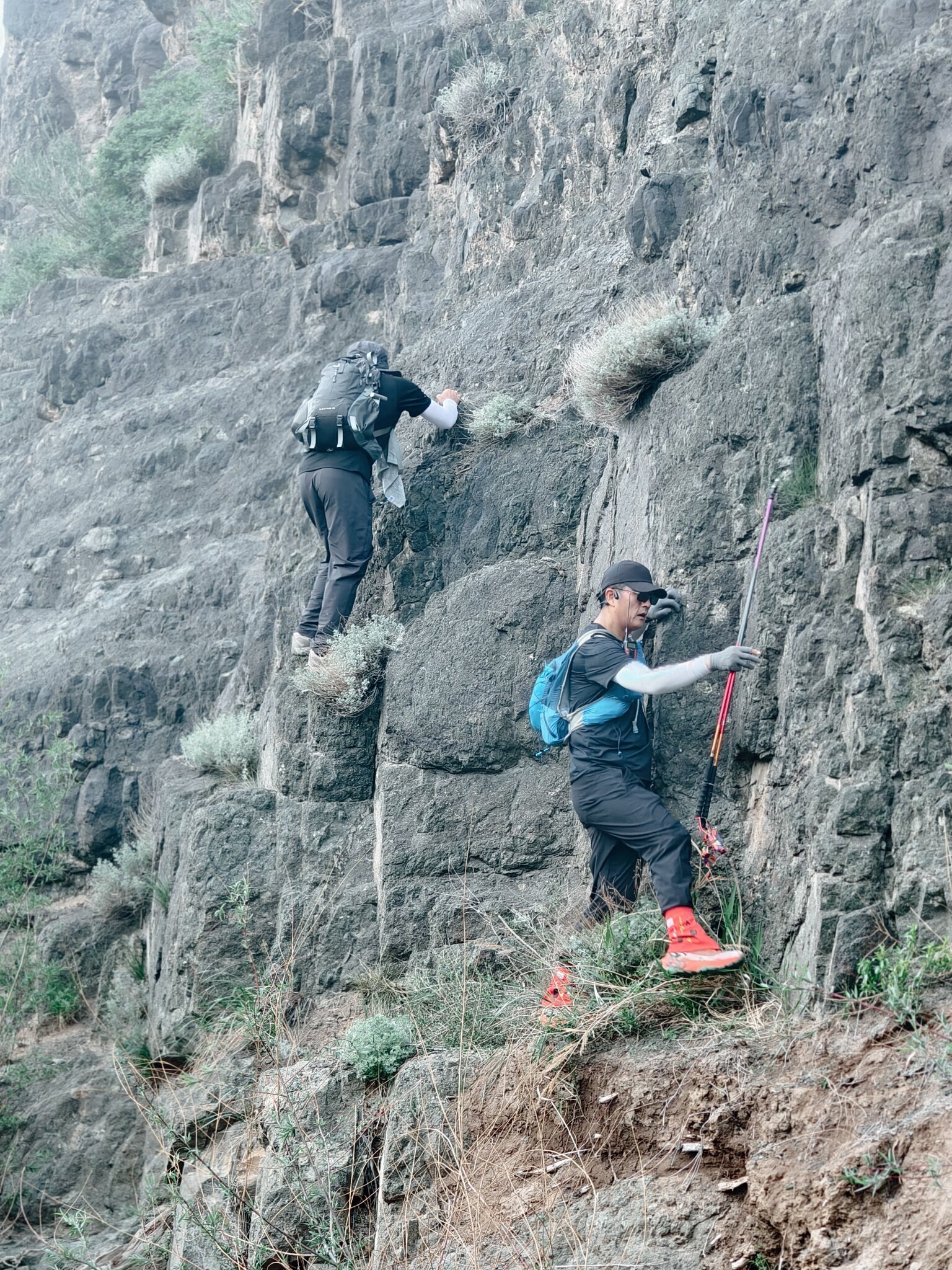 陡坡左边有个小瀑布
