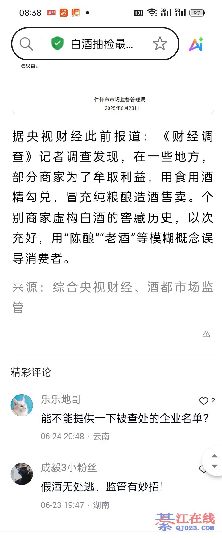 粮食发酵蒸流出来不添加剂任何东西,水,固态法,叫纯粮食酒。有纯粮酒GJ标准和质捡报告缺一不可。酒精和水,添加剂,勾兑的酒,叫酒精酒。比如22号央视财经频道报光的酱香型白酒GJ标准GB/T26760,固太法纯粮酒不能添加任何东西,有人举报,贵州省,尊义市ZF都引起重视,现在还抽检验报告还没出来。