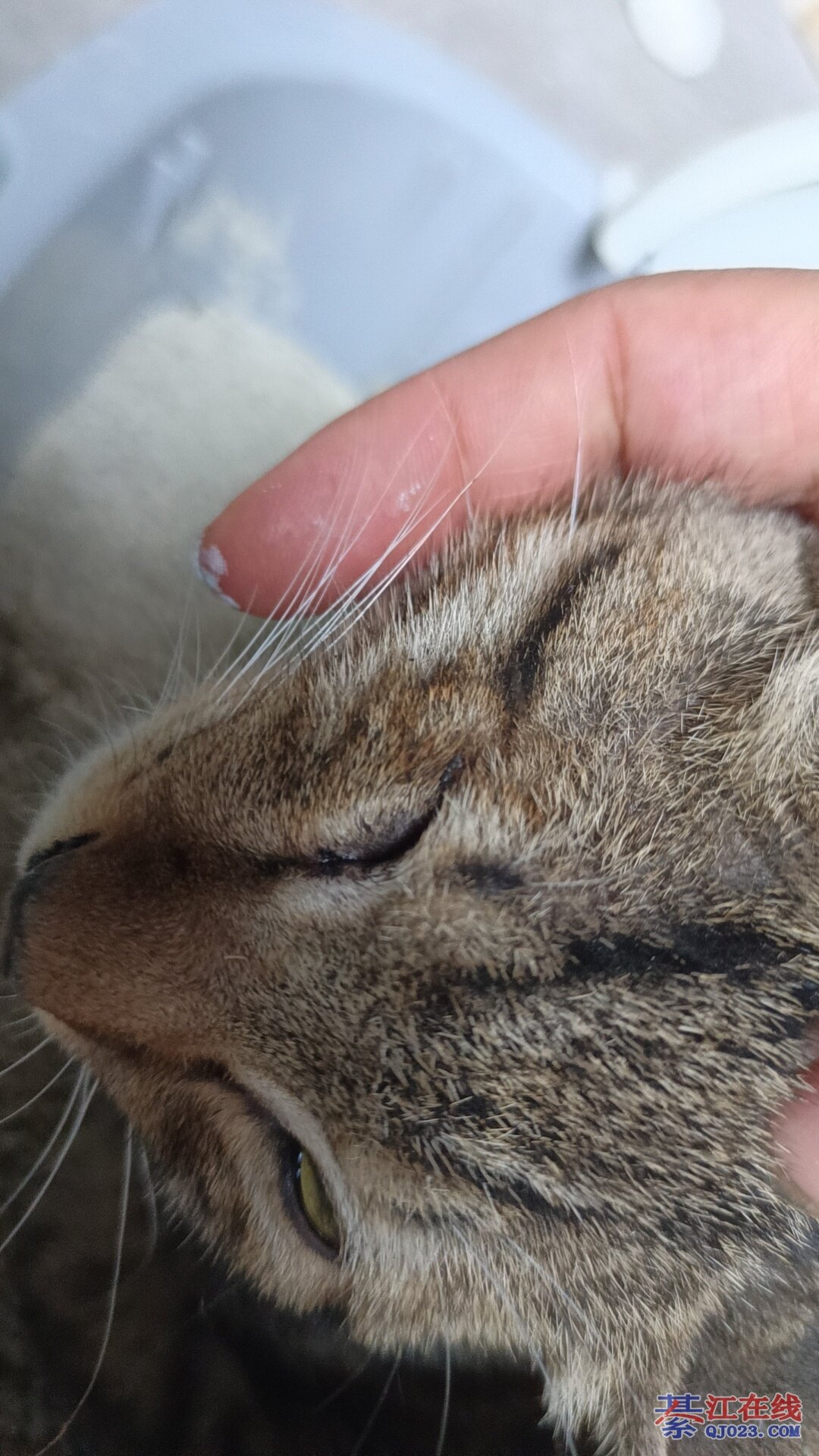 估计是痛,不知道是怎么造成的,医生说费用有点高,猫猫主人找不到,我个人能力有限,先保守治疗看