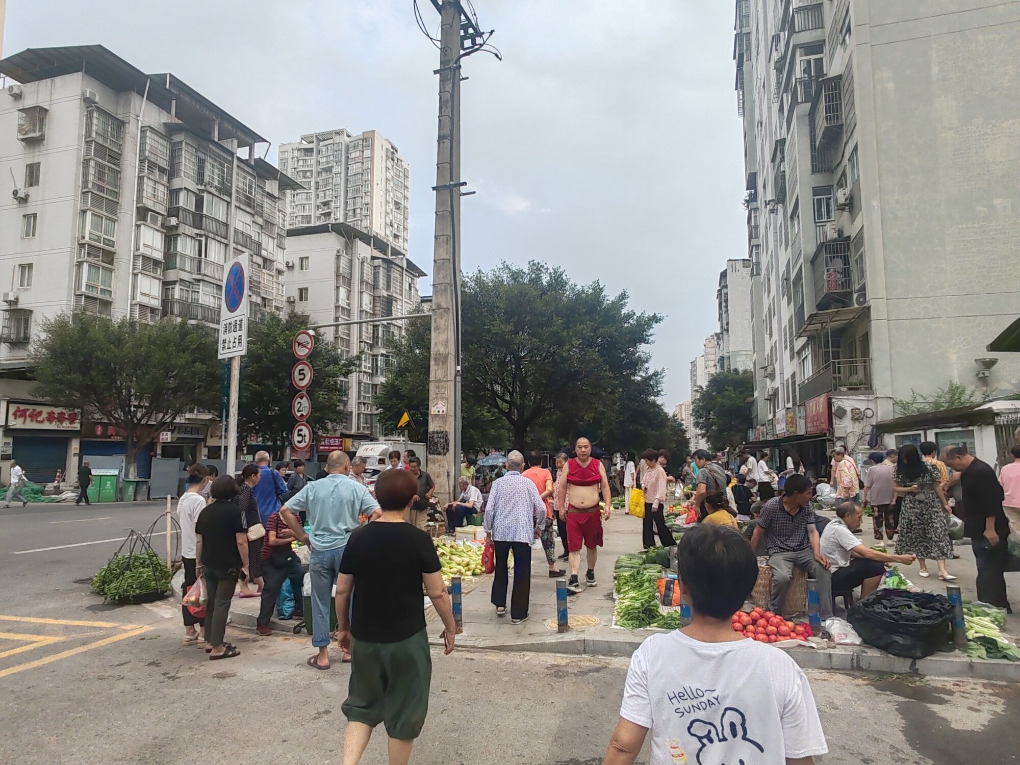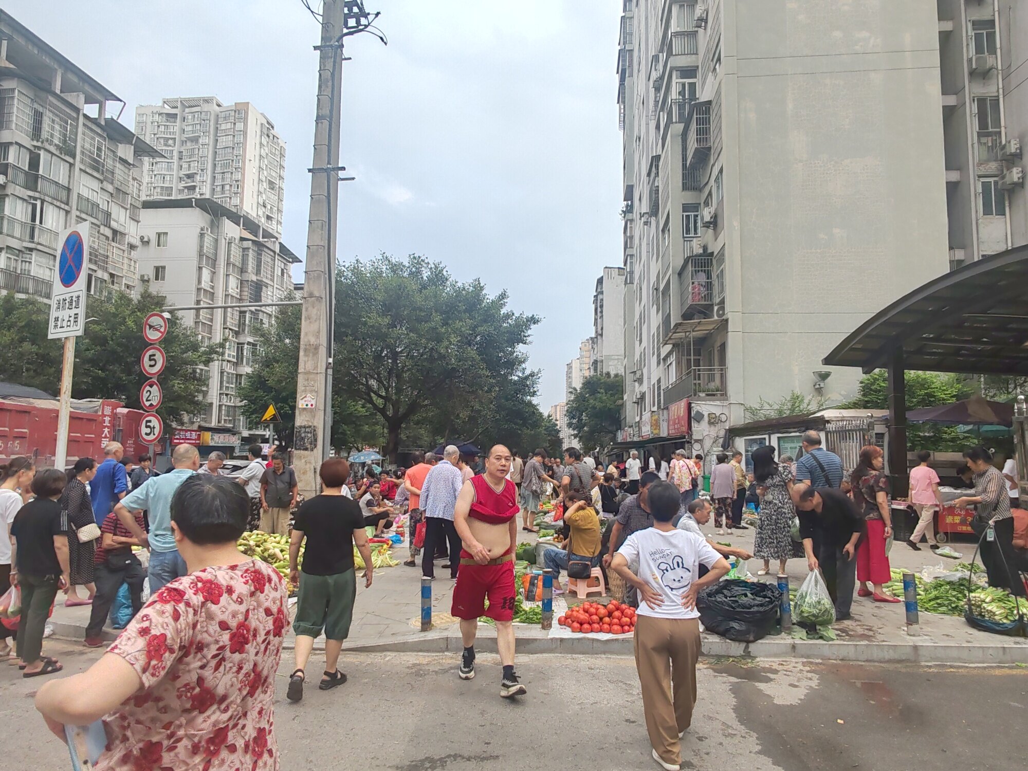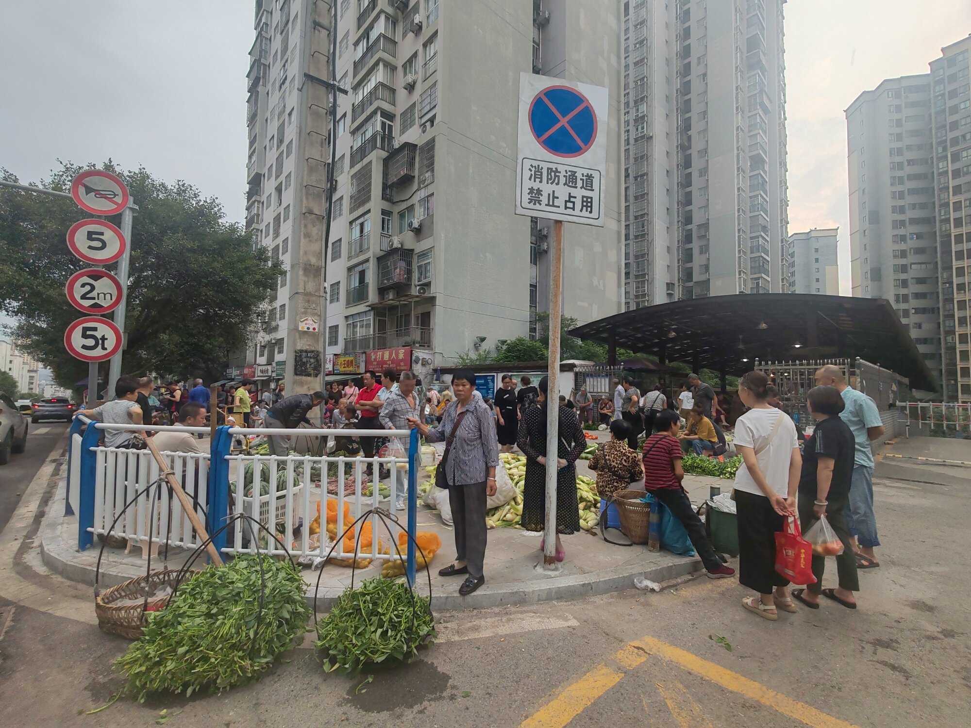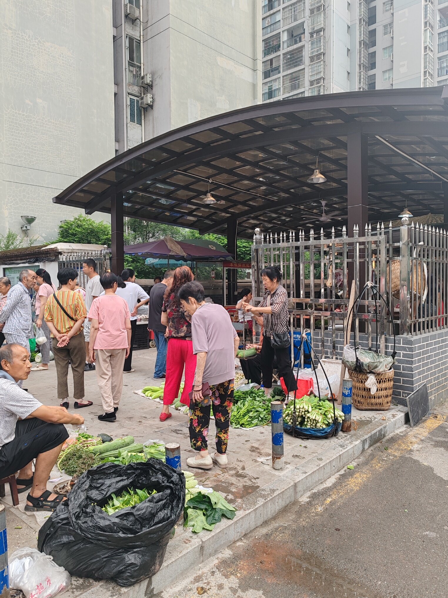 前几天不是城管在那里管嘛,不准摆出来,只准在蓬蓬里,那个蓬蓬这么矮,在那里面怕是没几个人受得了