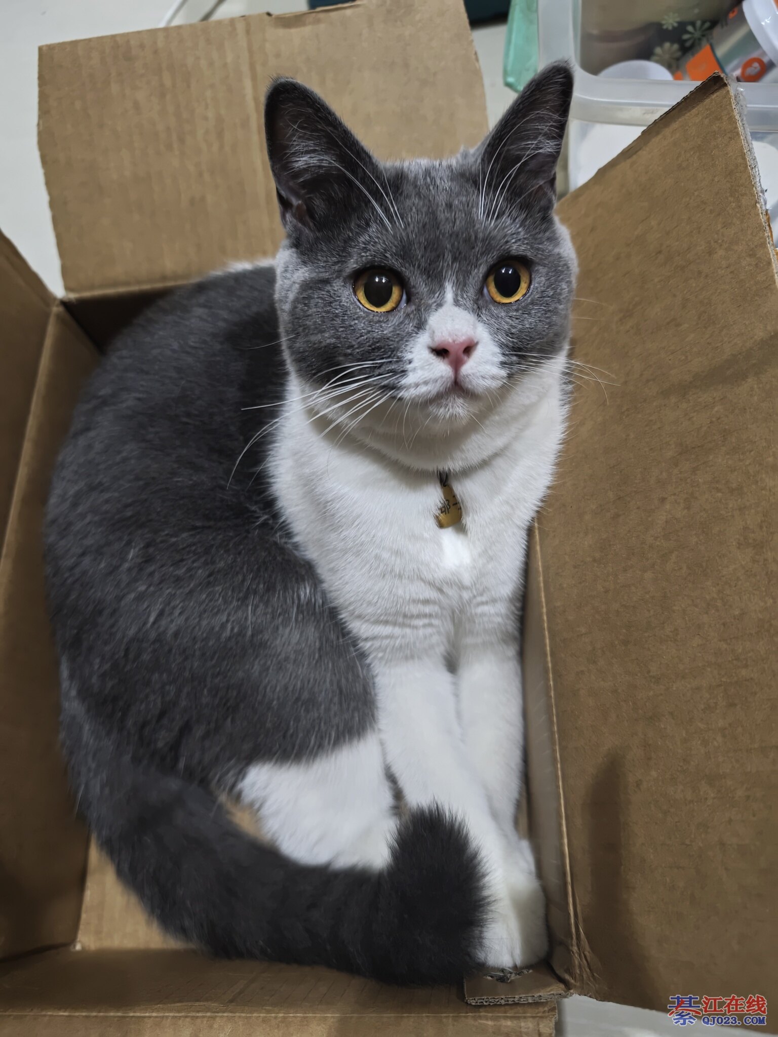 这颜色看起就像蓝白,我家是蓝猫