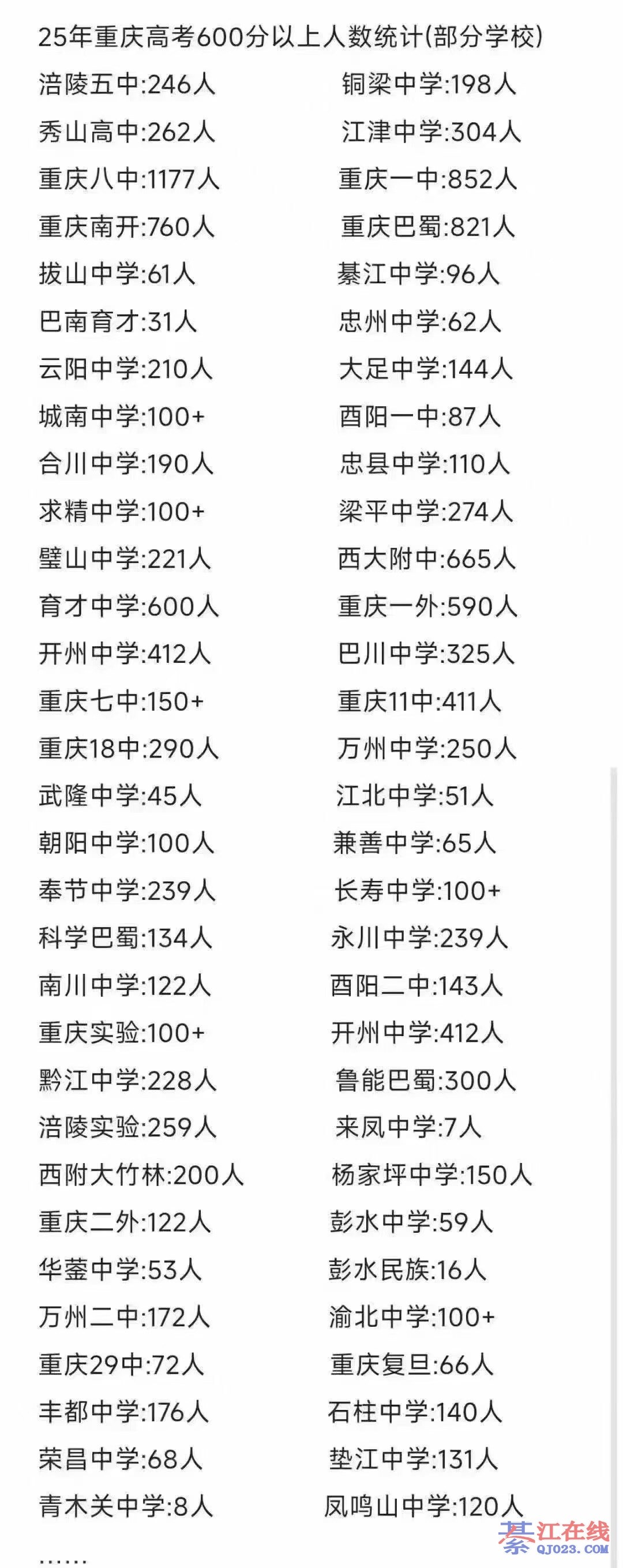 这两所学校怎么可能有600的,一个都没有,全部是綦中的