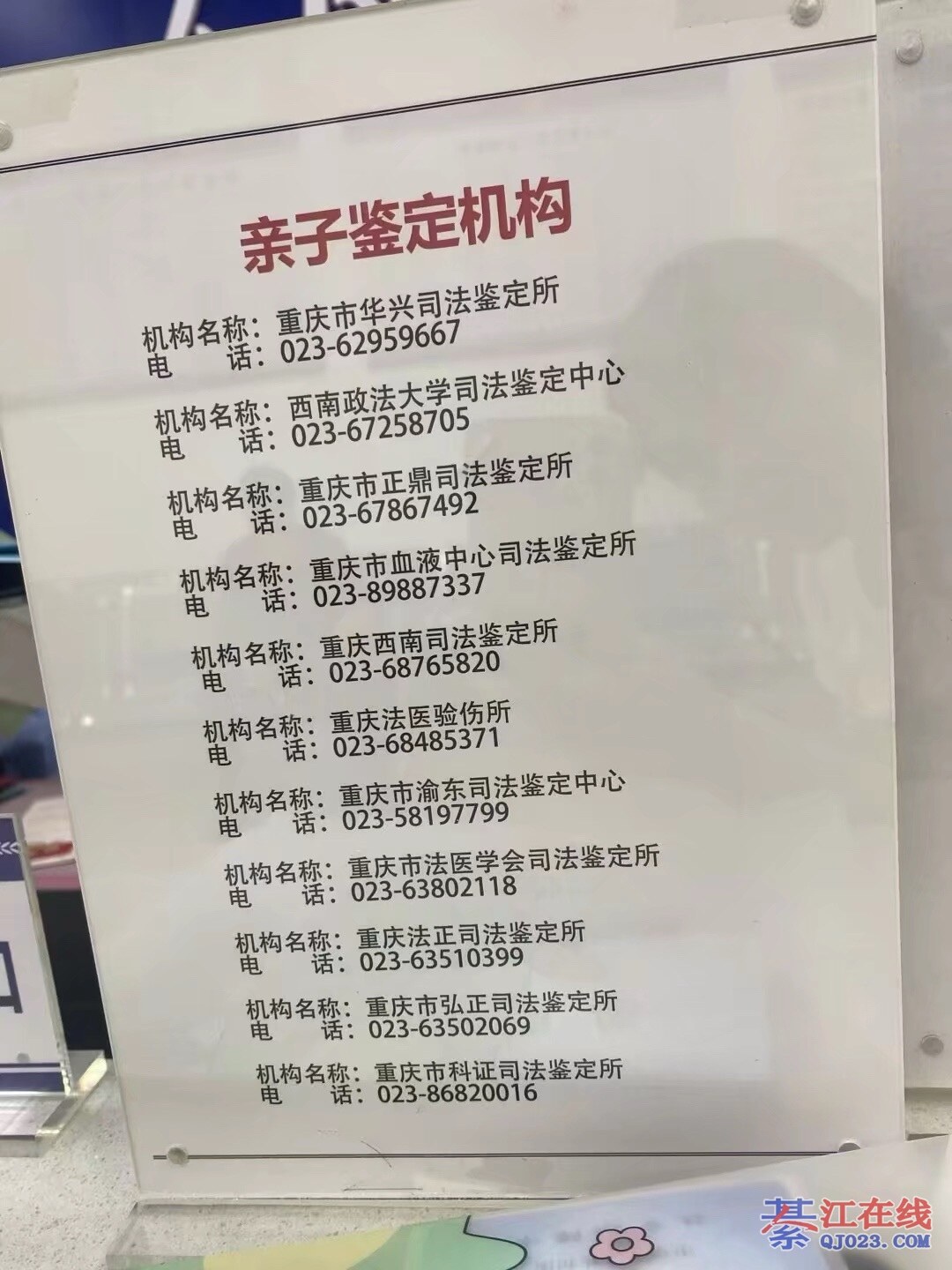 去派出所,问题就解决了,它会给你公安局指定的地方,綦江没有,大重庆只有四个公安局指定的司法鉴定机构。