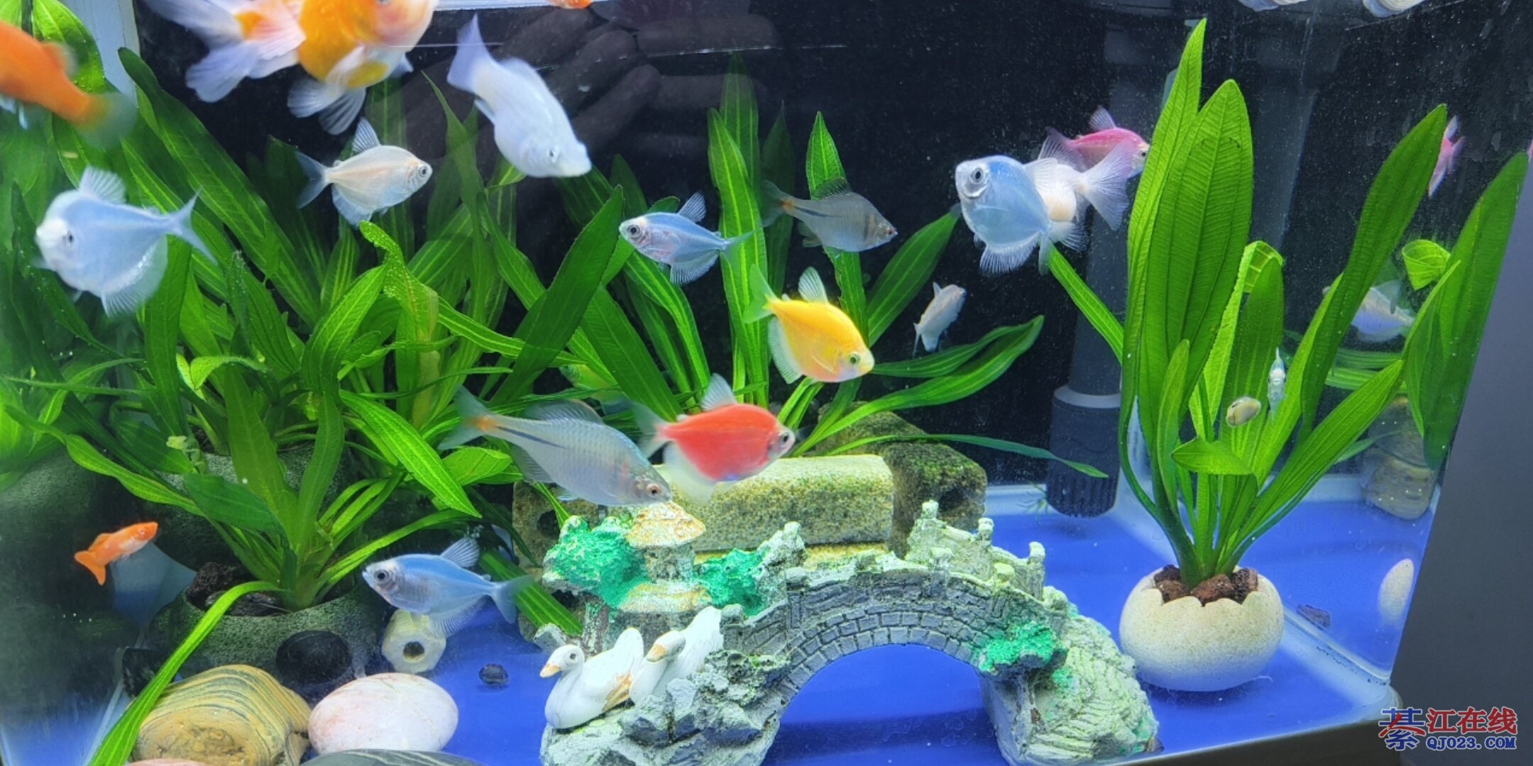 一百出鱼缸全套,还有二十几条孔雀鱼,要的自提