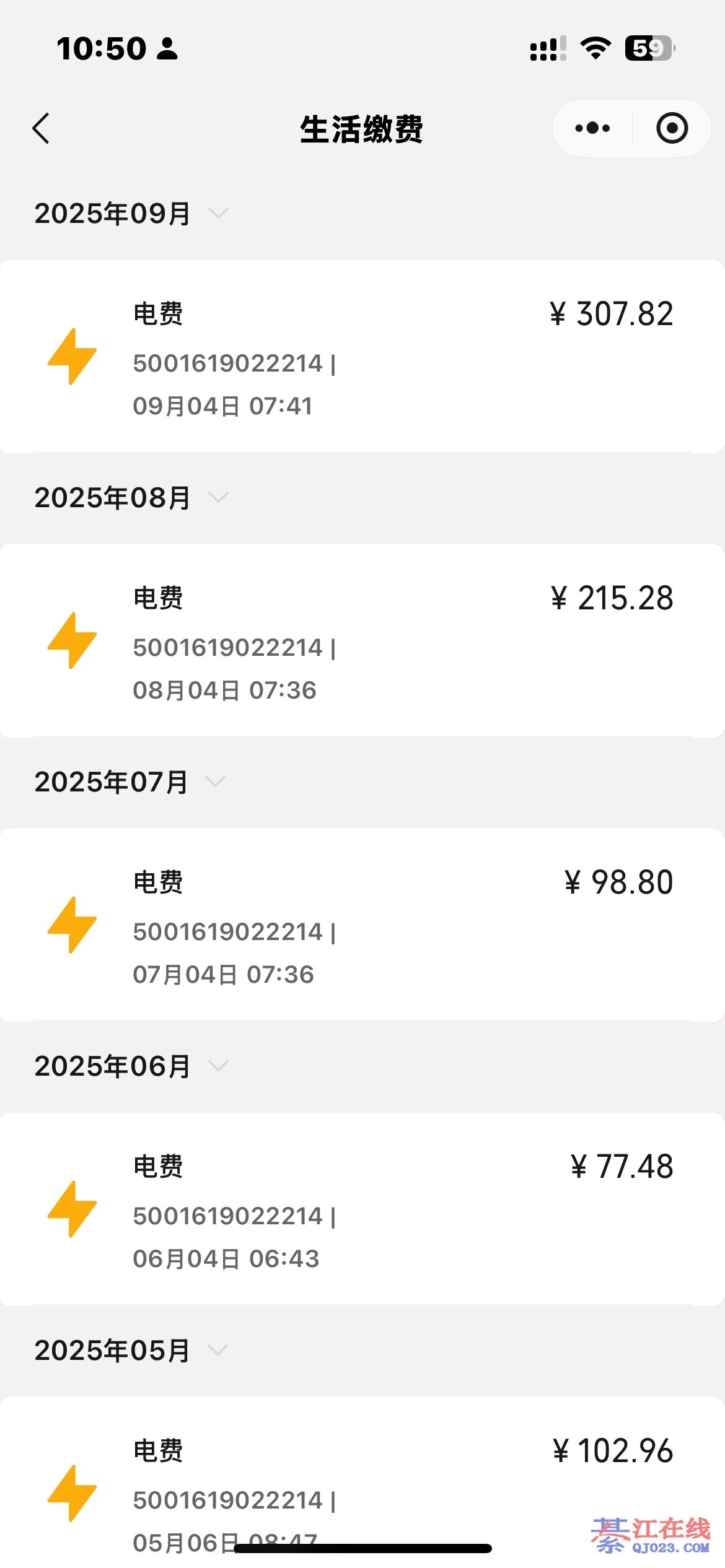她650美元电费,就是我们650元人民币