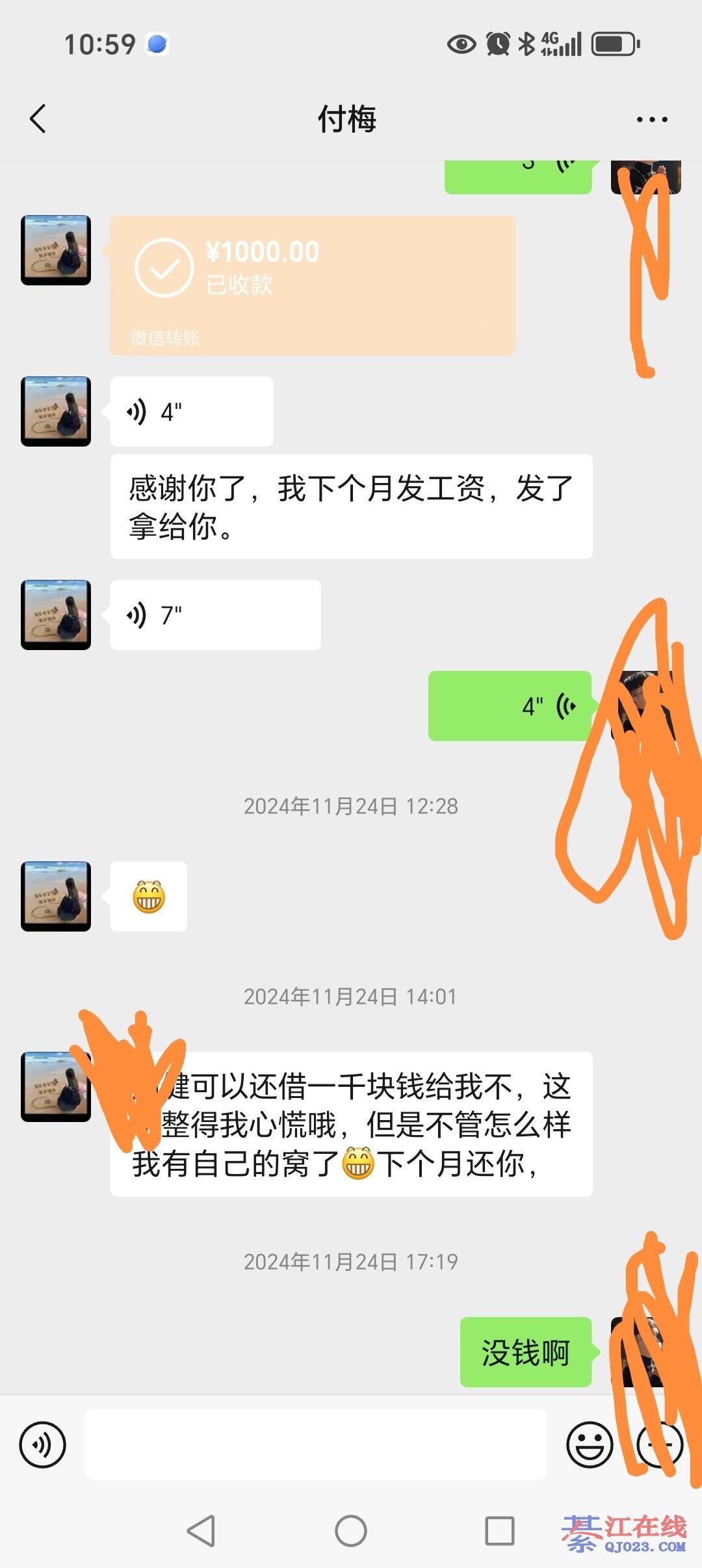 因为有个云南人叫祁剑住在康德城那边,几年前在我这里借了六百多块钱也是不还,借的时候说当时急用,微信被限额了,工资又没发,说得可怜得很,说了发工资就还我,结果后来问他刚开始还活着的,后来微信电话全把我拉黑了,可能是耍机车被撞死了