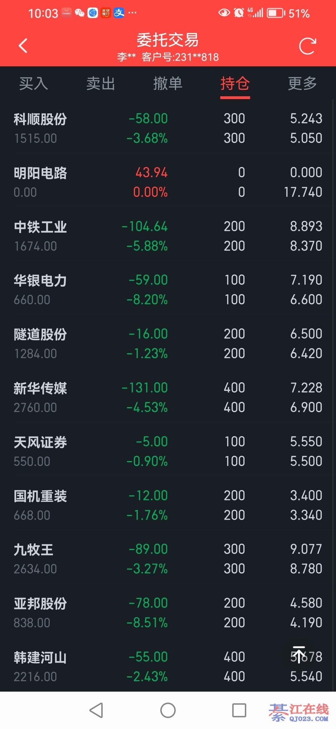我的天啊,你这持仓.五花八门. 亏是深套. 赚就是赚个回本. 如果卷商不是万一0.75免五的.手续费都费劲