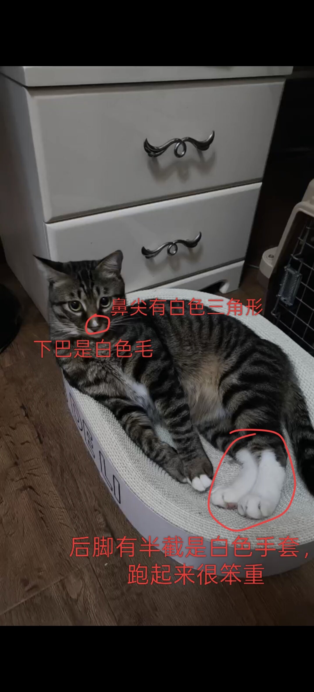 还没有找到,请问您在哪个小区住?如果在这附近的话可以帮忙留意一下,谢谢!我觉得它应该就在这附近转悠,很胆小怕人