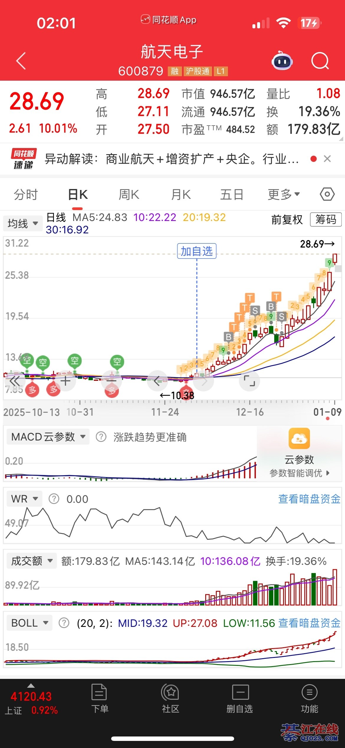 商业航天资金介入太深.一时半会死不了.只会高低切绕异动.就算回调.还有一个终极预期.那就是火箭回收成功!但是一旦回收成功!那就是主力借利好出货的时候了.