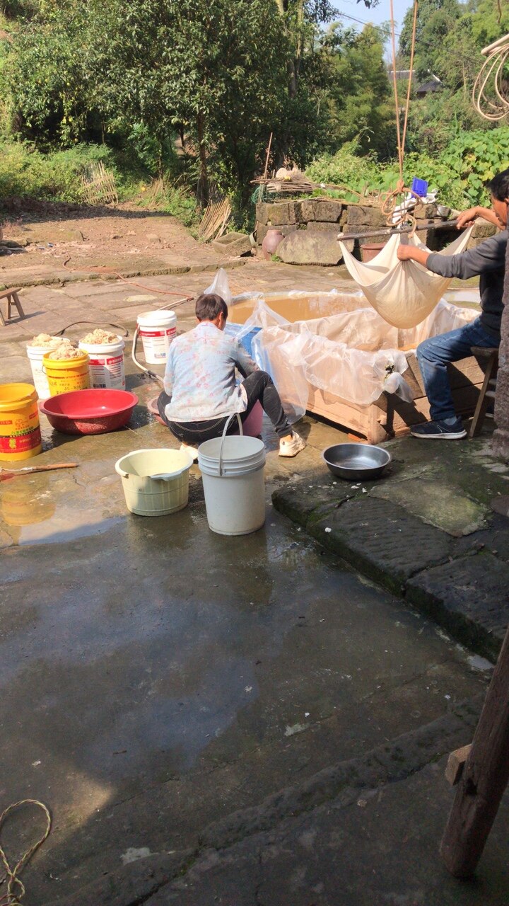 你那个红薯粉该多透几道,把油粉滗了甩了就白了,我前几天回去也弄了十几斤红薯!透了好几道油粉甩,那个油粉没得粘性得,况且看起不安逸!