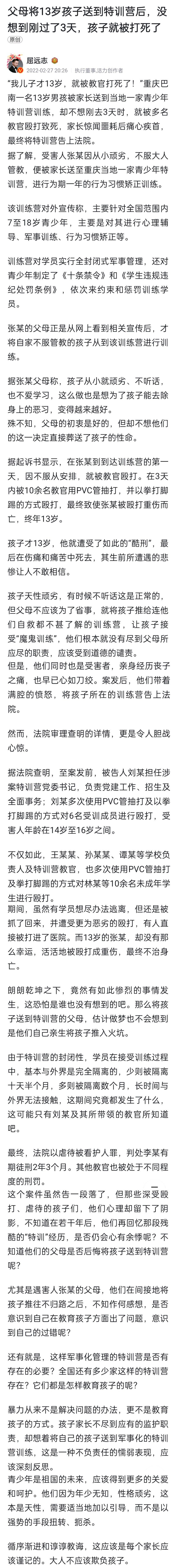 这又让我想起了那个被教武术机构打死的那个男孩