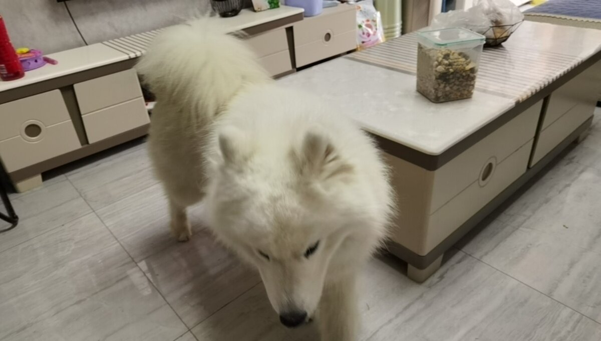 御景江湾19栋,有只萨摩耶,很大,不晓得是不是这只