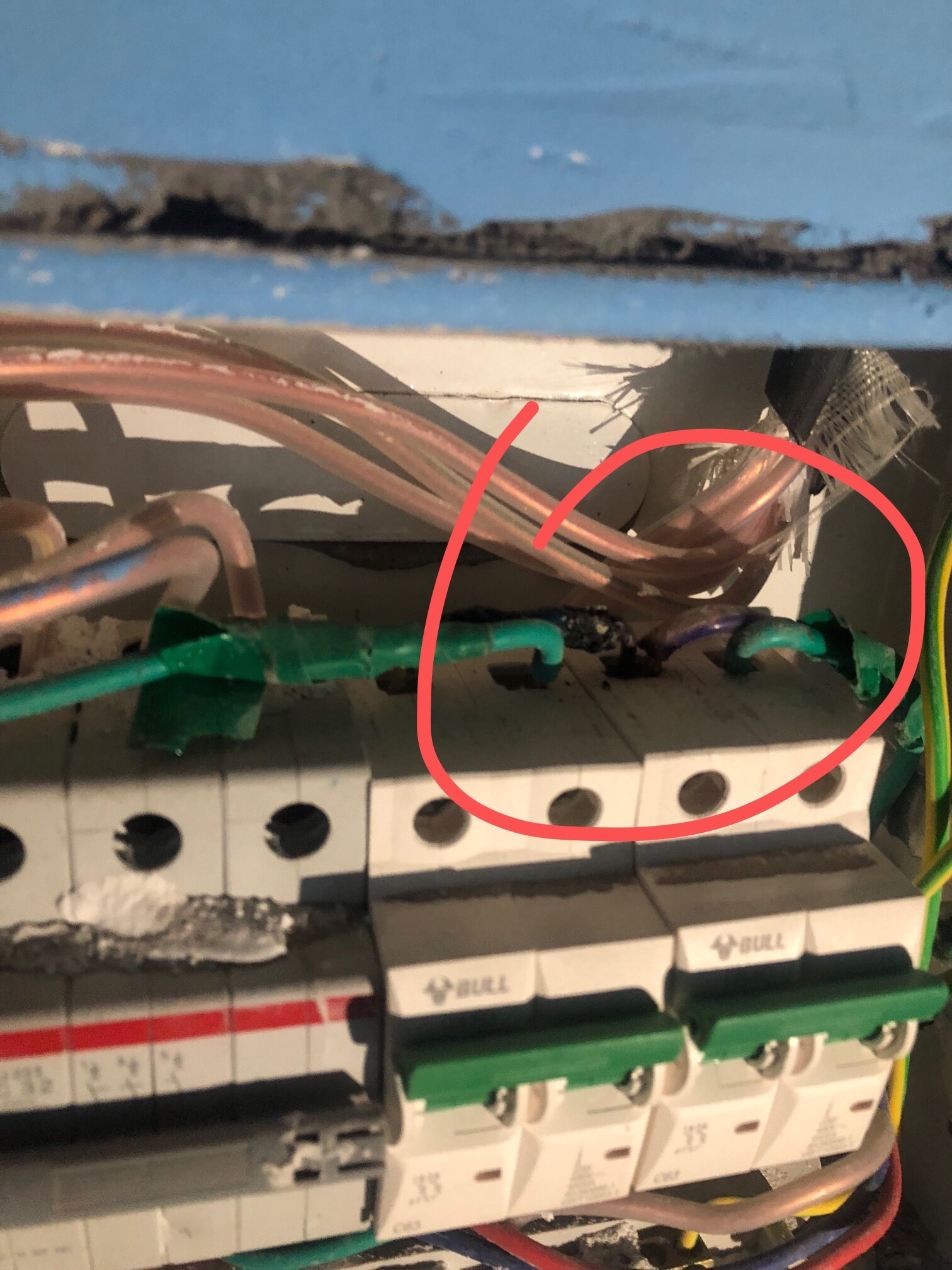 线没有压紧,或者螺丝忘了紧,很多老电工也会有这种失误。只不过你这个电工布线也太没水平了。