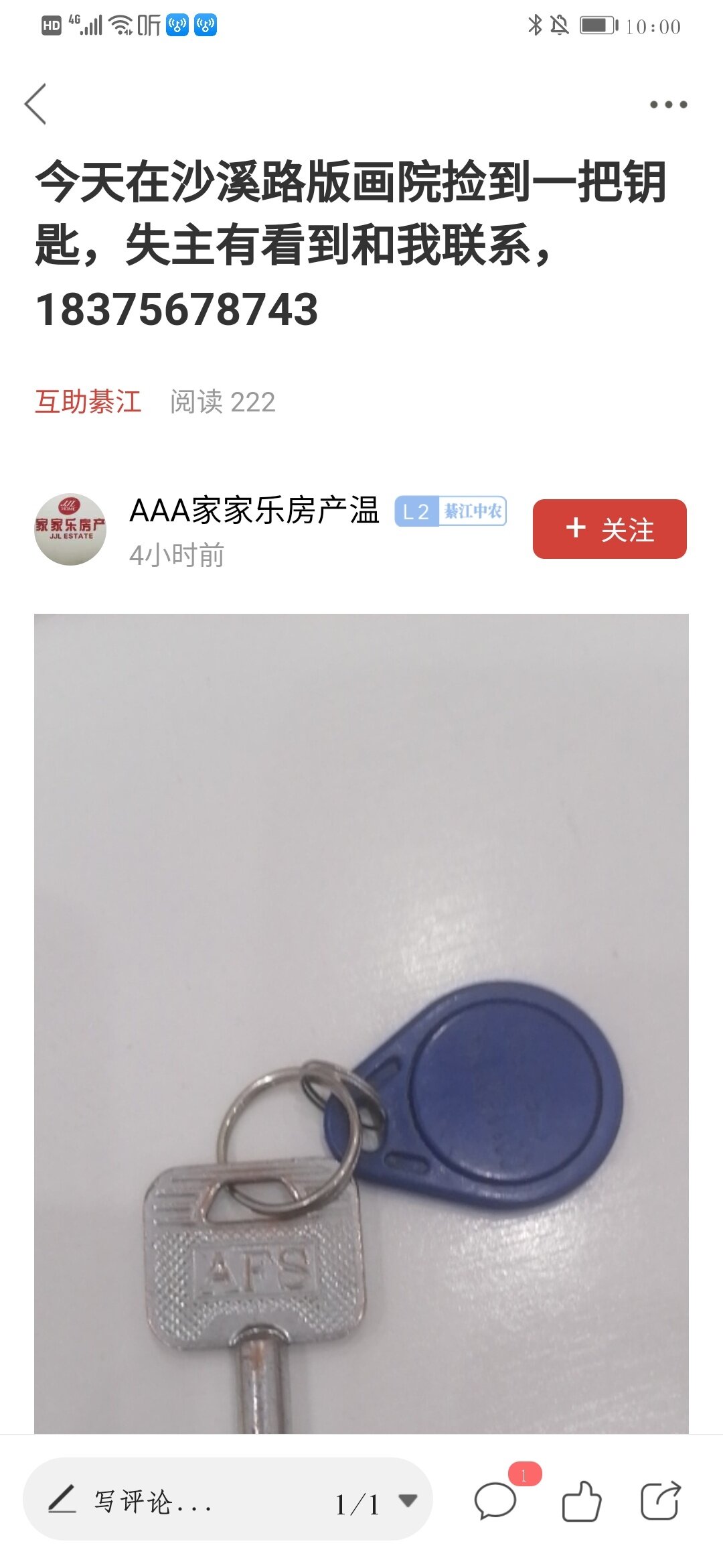 有没有捡到一串钥匙的,请回复