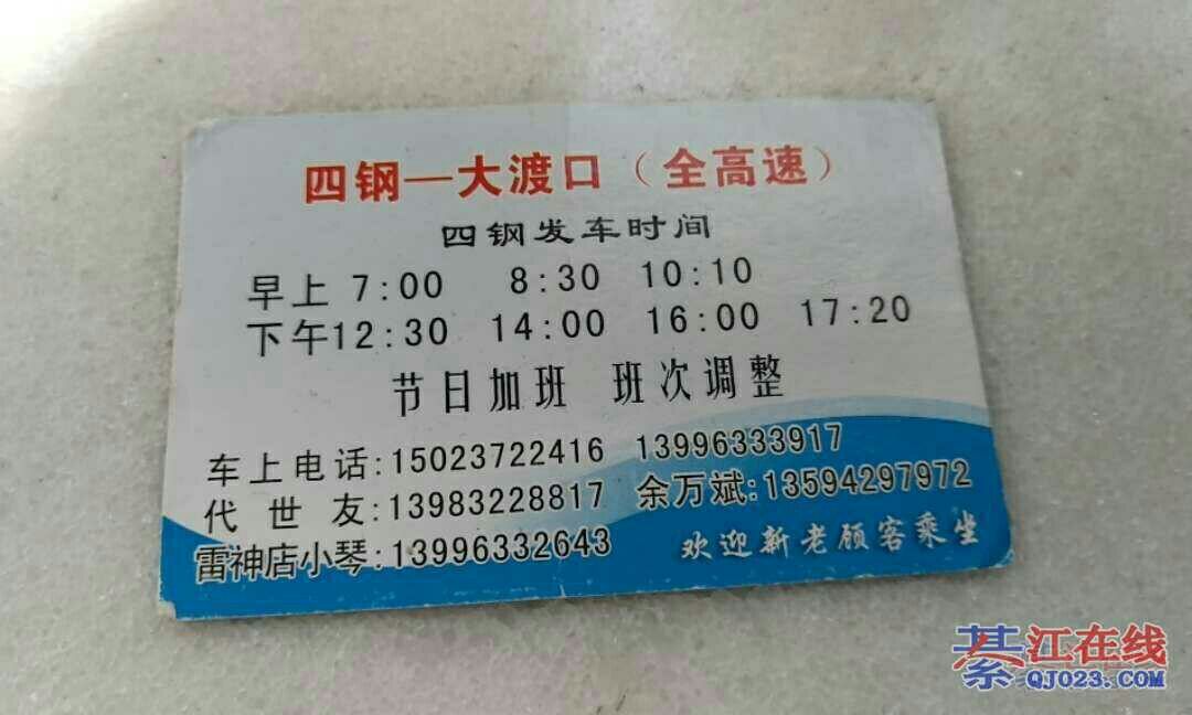 可以联系4刚大大渡口的客车