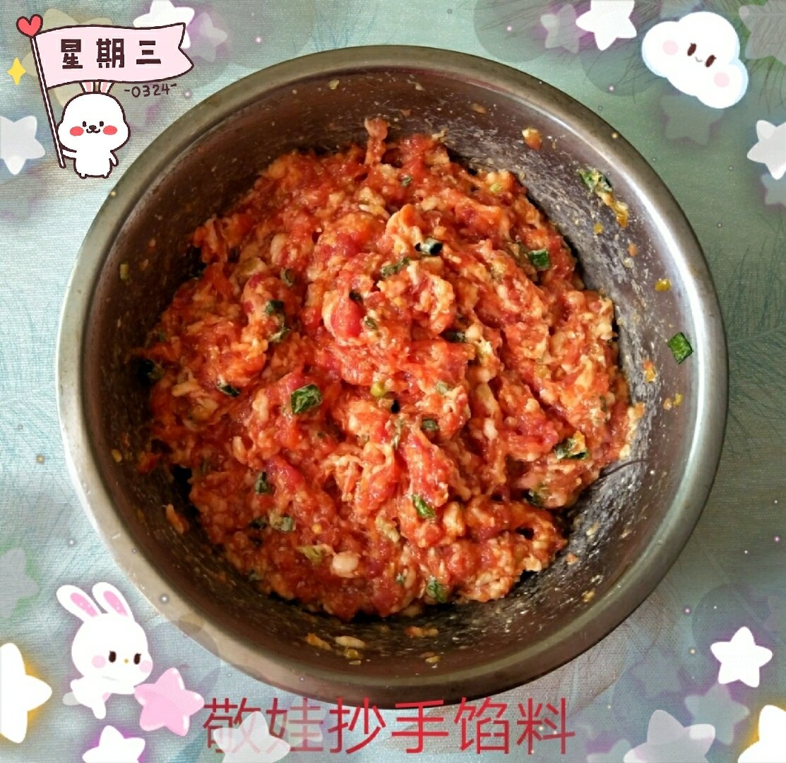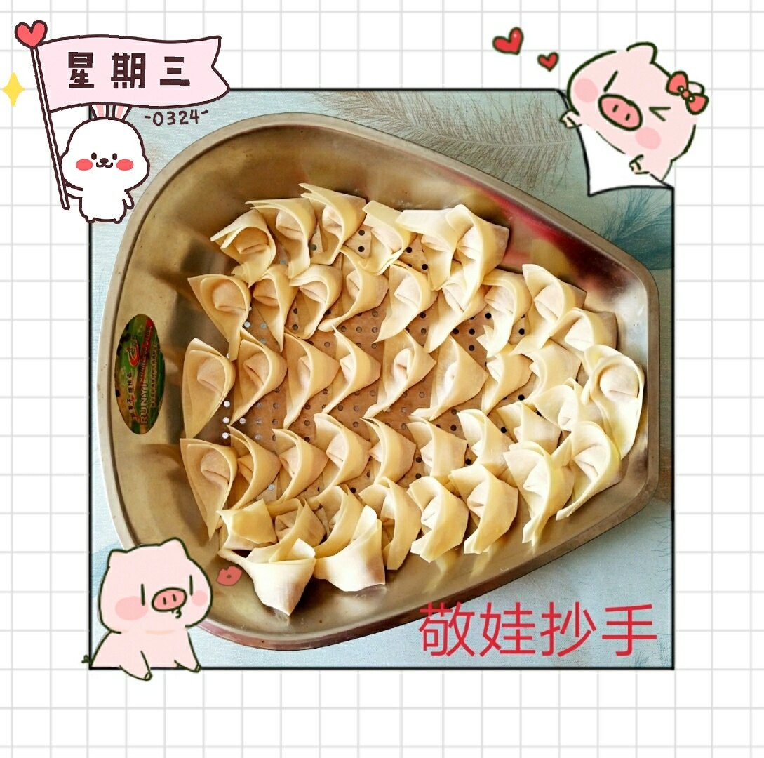 自己买肉、剁馅、调味,亲手包的敬娃抄手。肉鲜、味美!关键自己做的比在外头吃的要放心些安全些!为明早早餐做好准备!