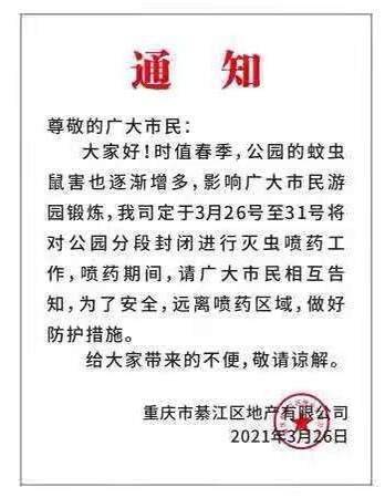 注意!綦江沙溪公园喷药杀虫通知