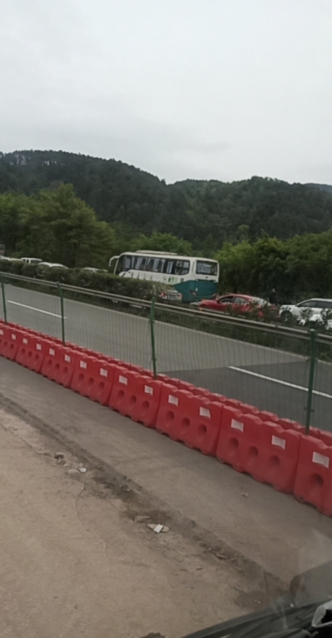 堵车了,渝黔高速沙鸡沟一号大桥处堵车了