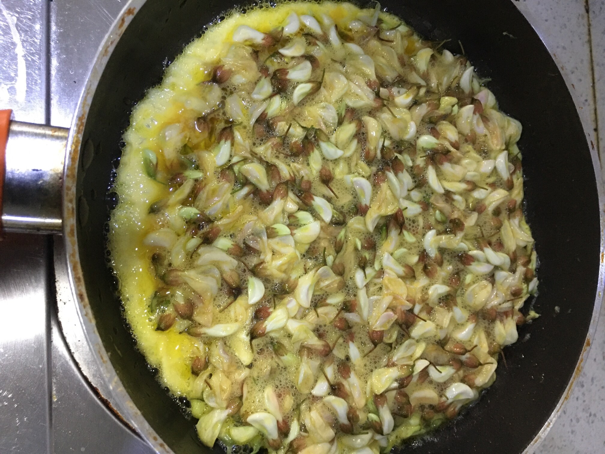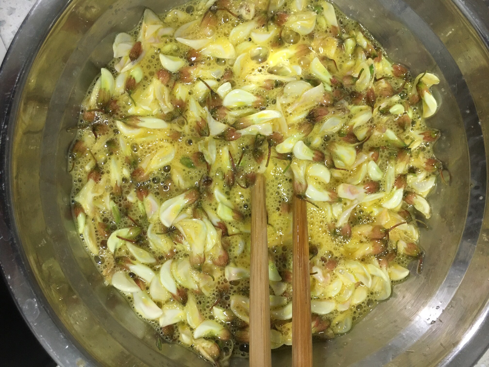 我妈她们是用这来拌面粉炸饼的...去帮她摘过花,吃了...兴趣全无...不大好吃...