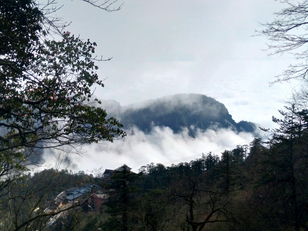 两天爬上去(太子坪),第三天早上五点半上金顶!运气不错,看到日出和云海!
