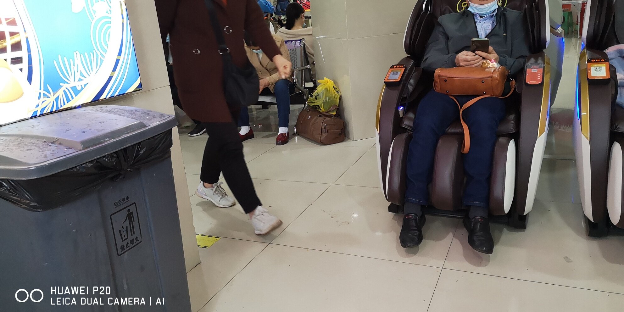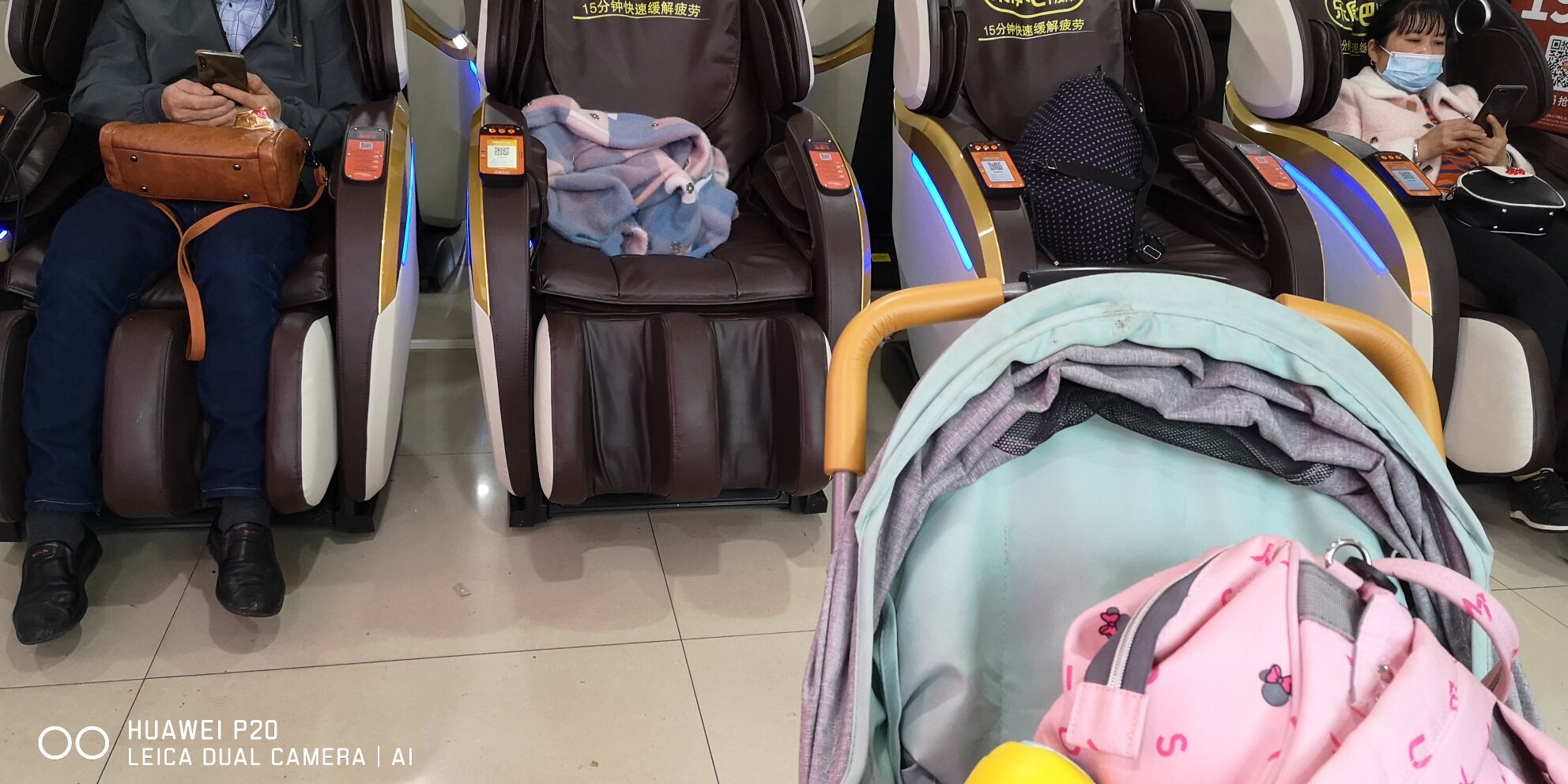 错了,应该是八个免费座椅,上面标识是军人、应急人员专用,其他的都是收费按摩座椅 一共13个 ,除了这些座椅,我就没有看见其他可以坐的地方,二楼我没有上去,不知道有没有座