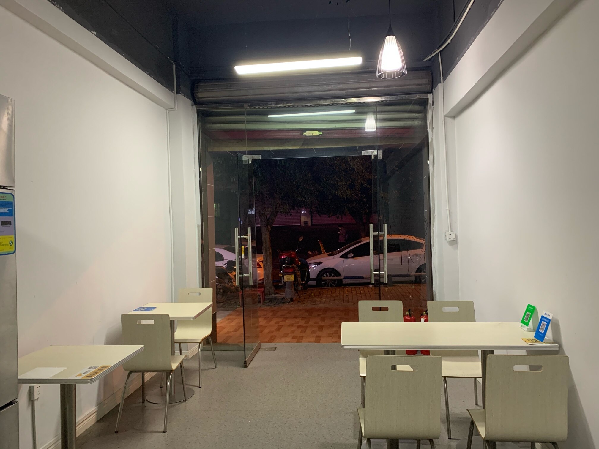 雪亮四开门双温冰柜、志高全钢全铜操作台冰柜、不锈钢快餐座椅、万和不锈钢抽油烟机、不锈钢置物架、不锈钢桌子等