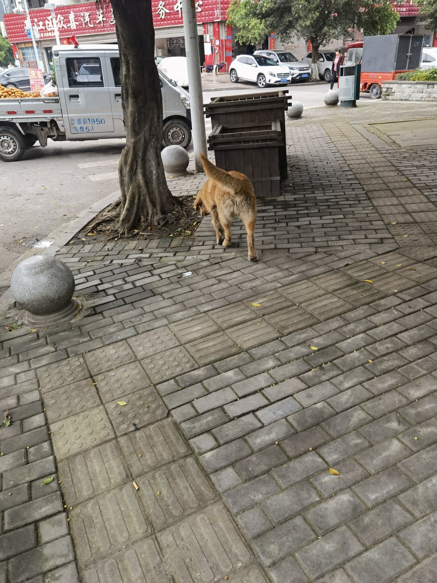 前两天在512看见一只,黄色的,比这只干净,还有项圈戴起的。