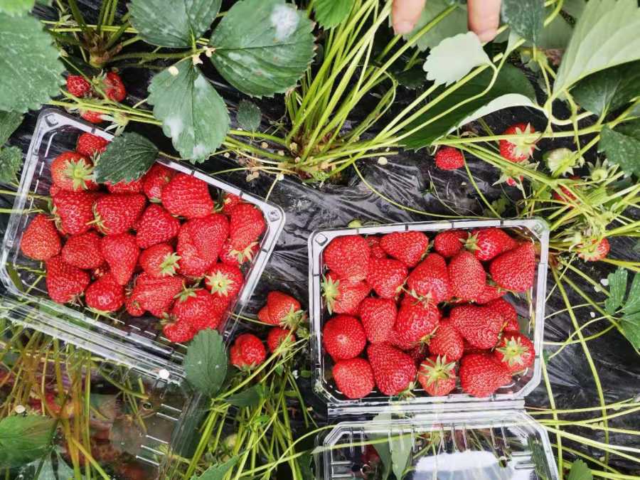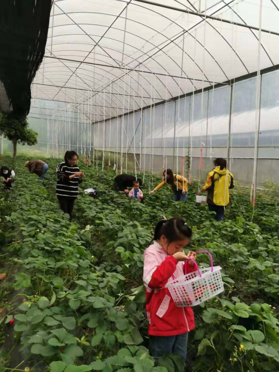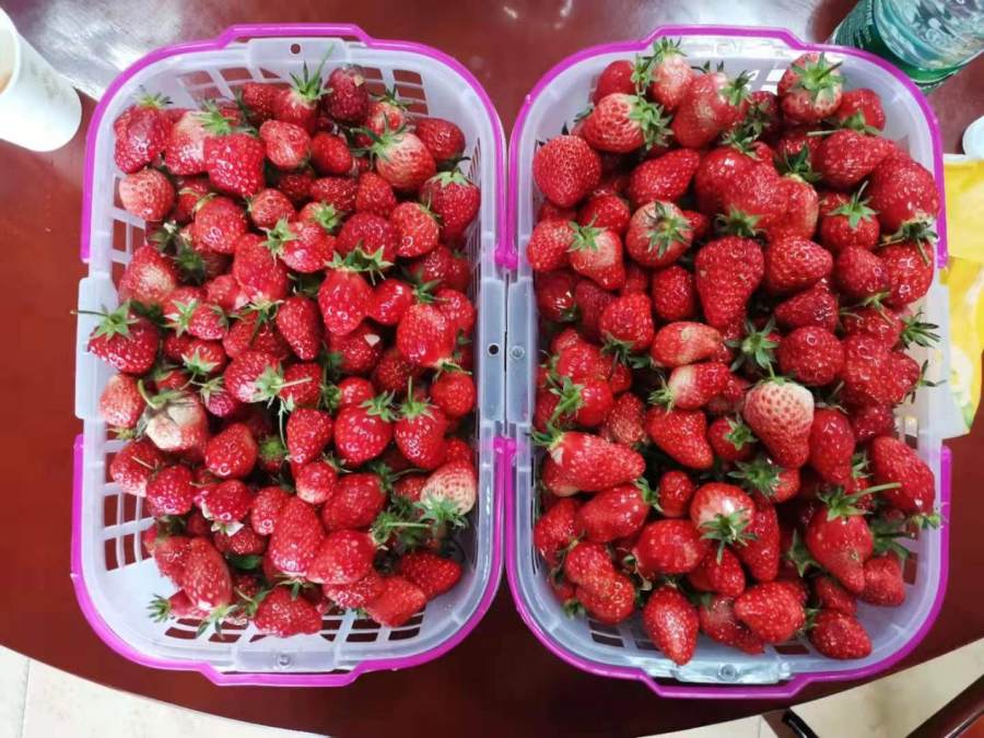 女儿摘草莓摘的十分认真,一边摘一边乐呵呵的笑。还时不时的偷吃一两个,我会心一笑。也学着她的样,拿起一个草莓,鼻尖嗅着草莓独有的芬芳,咬上一口,酸酸甜甜,确实挺美味的。不知不觉已经摘了小半框草莓了。我们商量着把草莓寄存在一个地方,然后去其他地方转转。