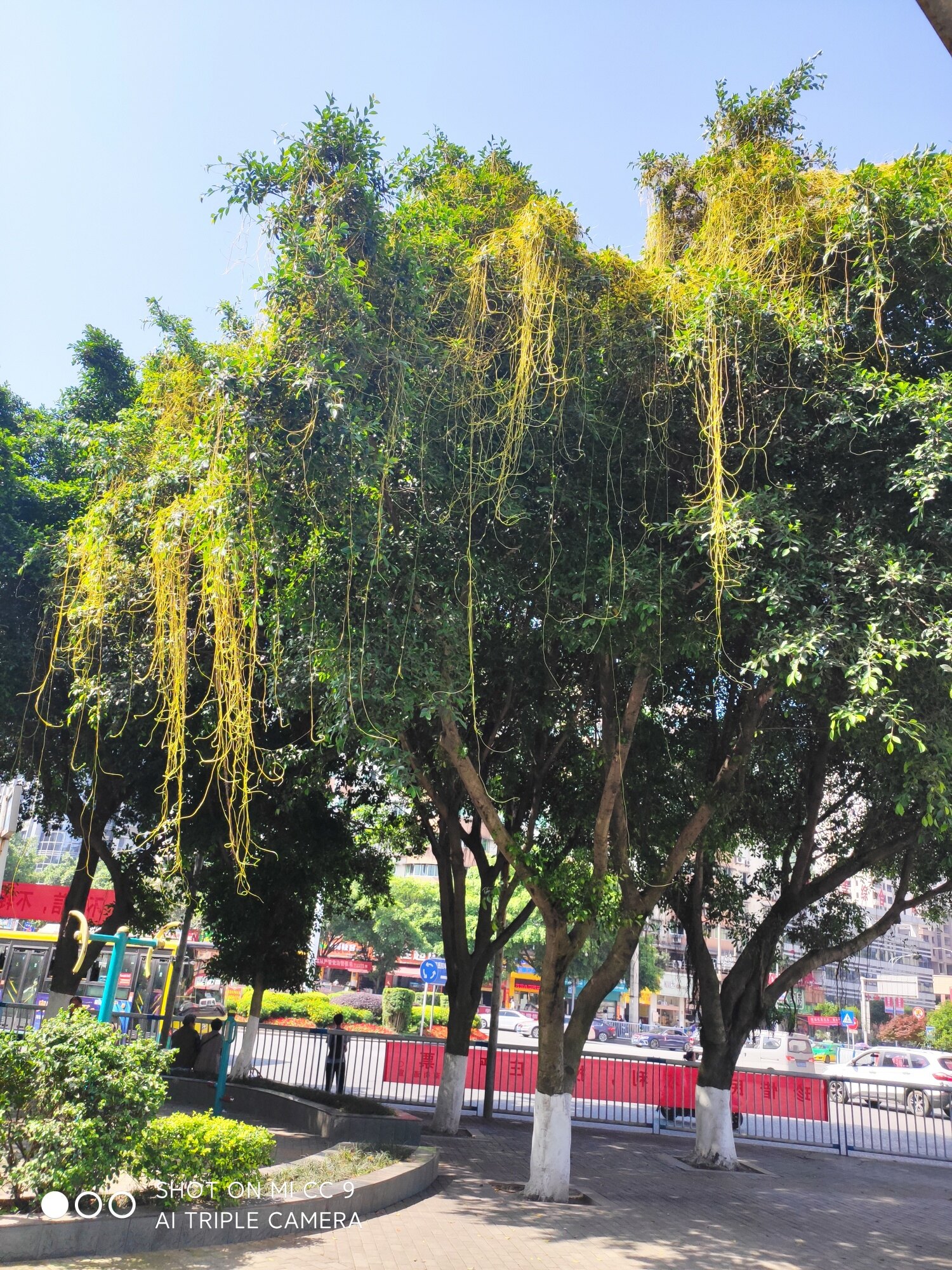 沱湾转盘边榕树上的菟丝子越来越多,树快被缠死了!为了美丽的环境,望治理一下!
