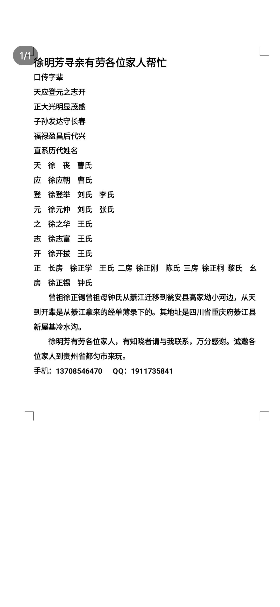 綦江叫新屋基这个地名的地方有很多,需要弄清楚所在的行政区划,这样才好找。我们王氏有人也是从綦江隆盛迁到瓮安去了一百多年,上世纪八十年代找回来寻到了老家的亲人。