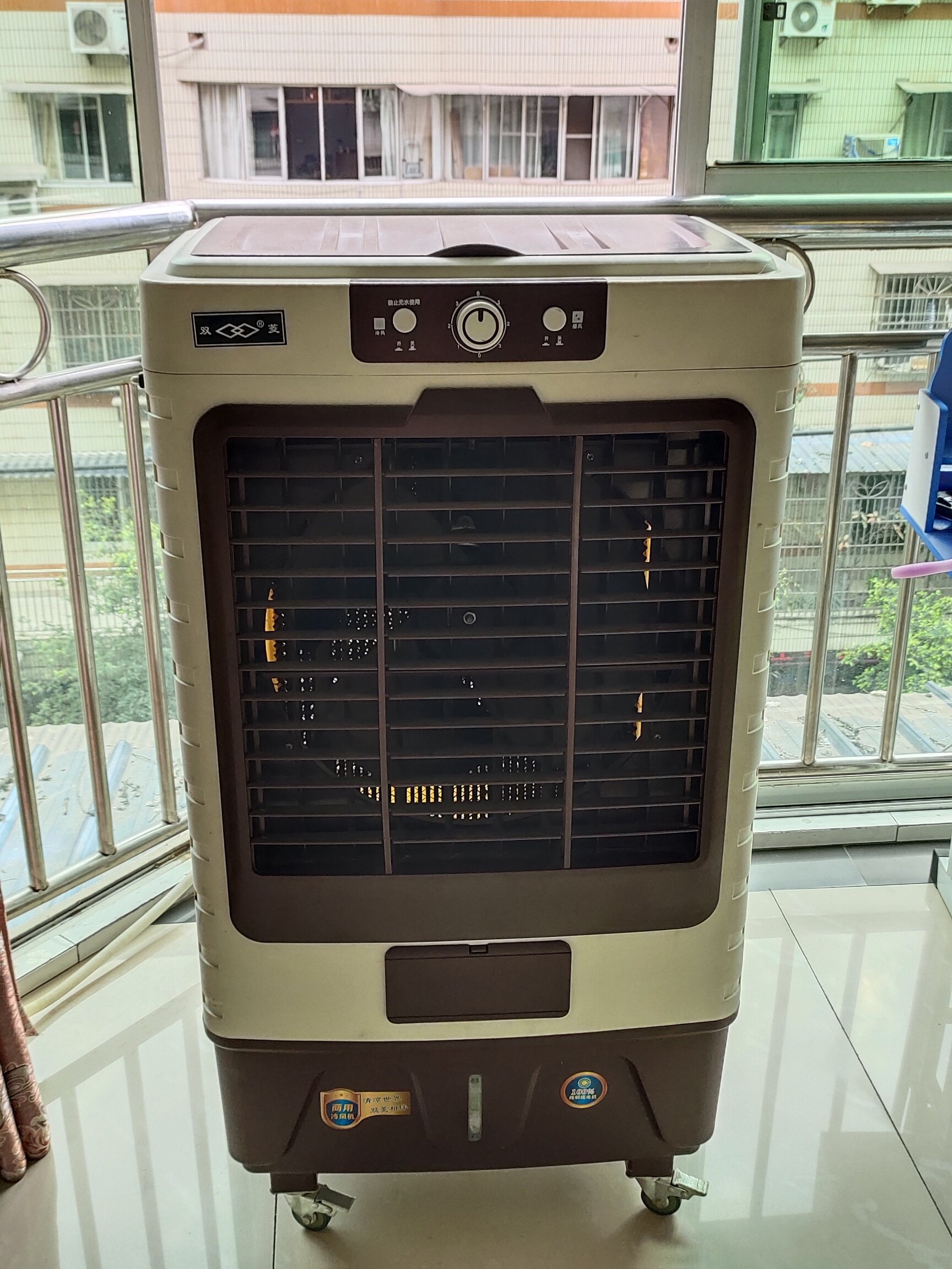 自己开店时买的,只用了一个夏天,现在没开店了,闲置在家中有点占位置,打算处理了,九成新,有开烧烤摊或者大排档的可以用,家里不怎么适合,因为风力太大了,比较适合坝坝头,很凉快的,吹出来的风没有热气,所以叫冷空调扇。我去年买成八百块,现在低价处理350元,有意者打电话给我(自提)<br><br>