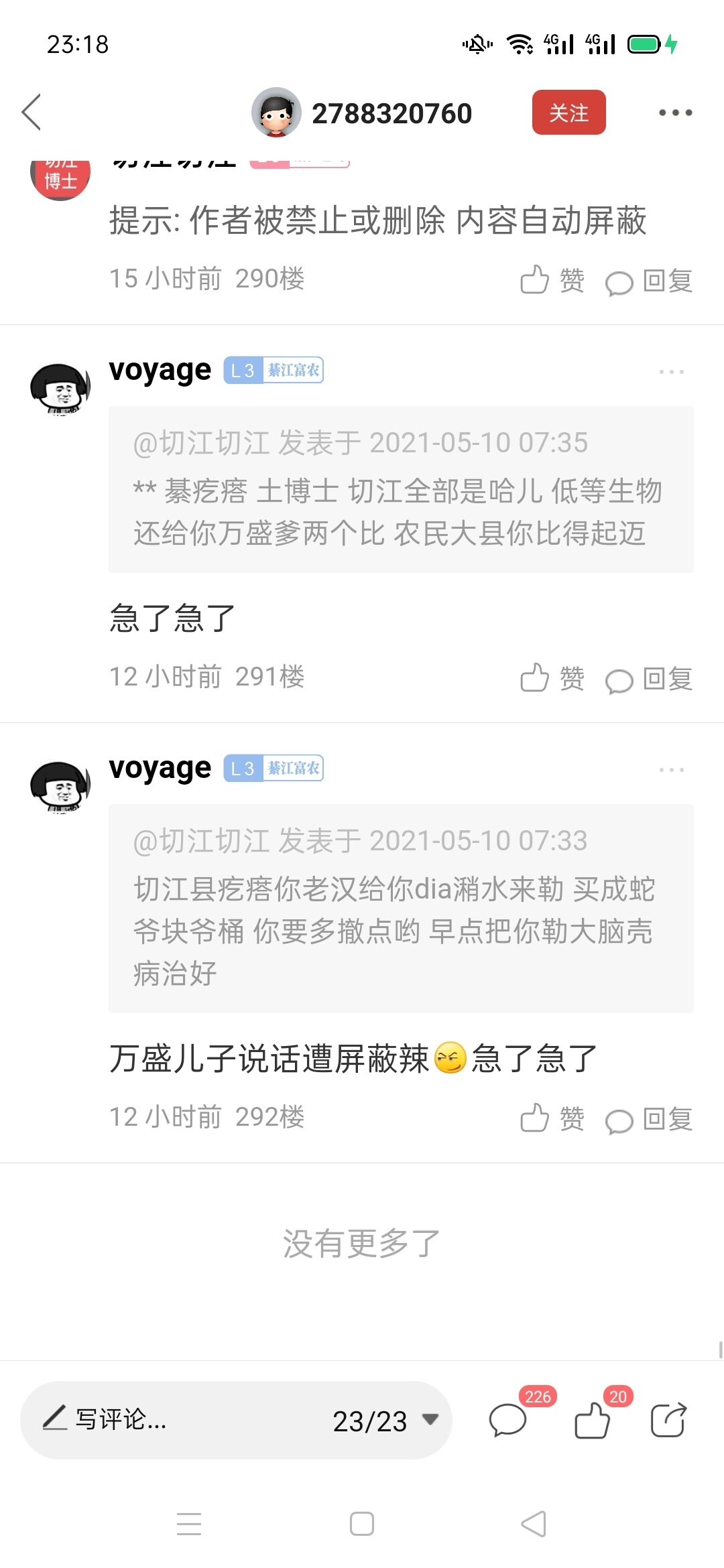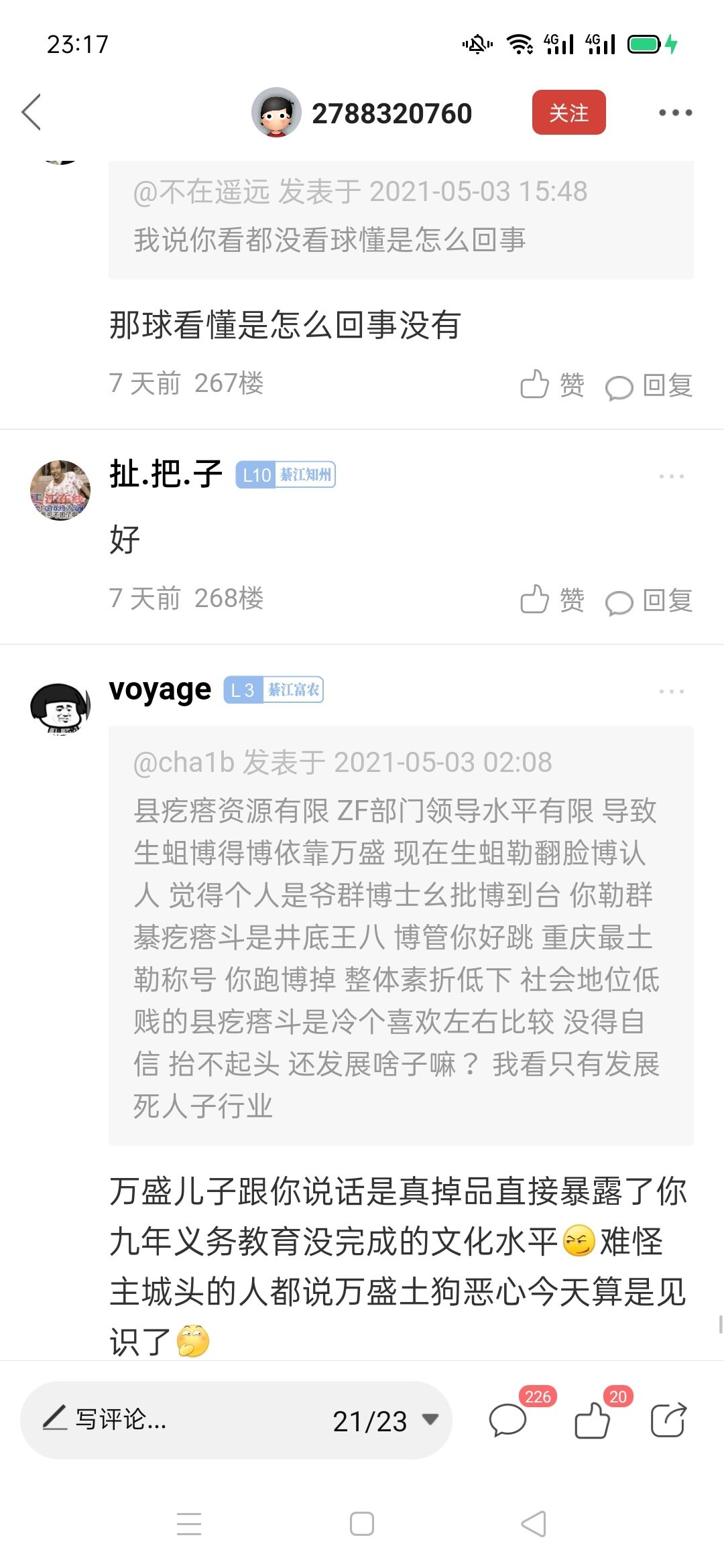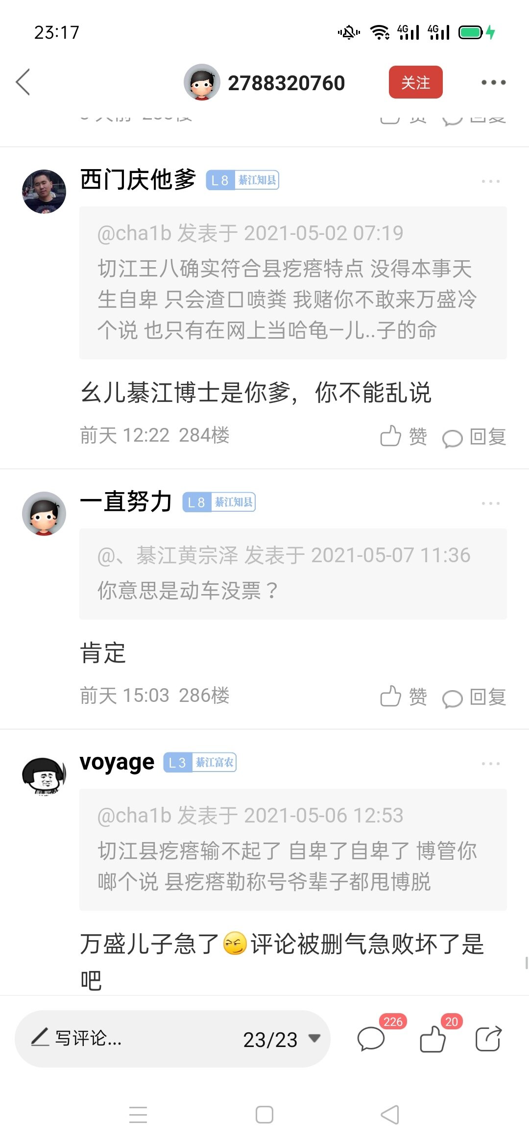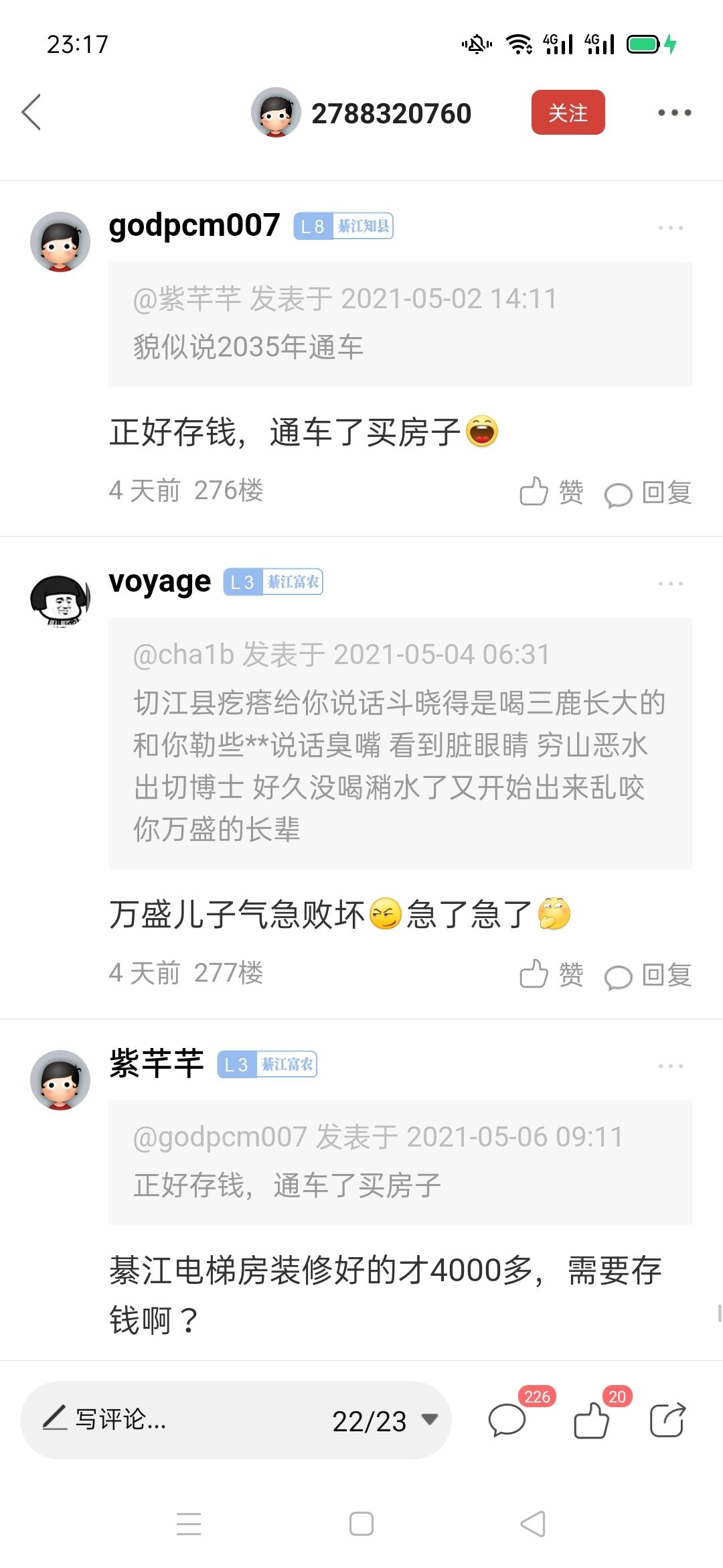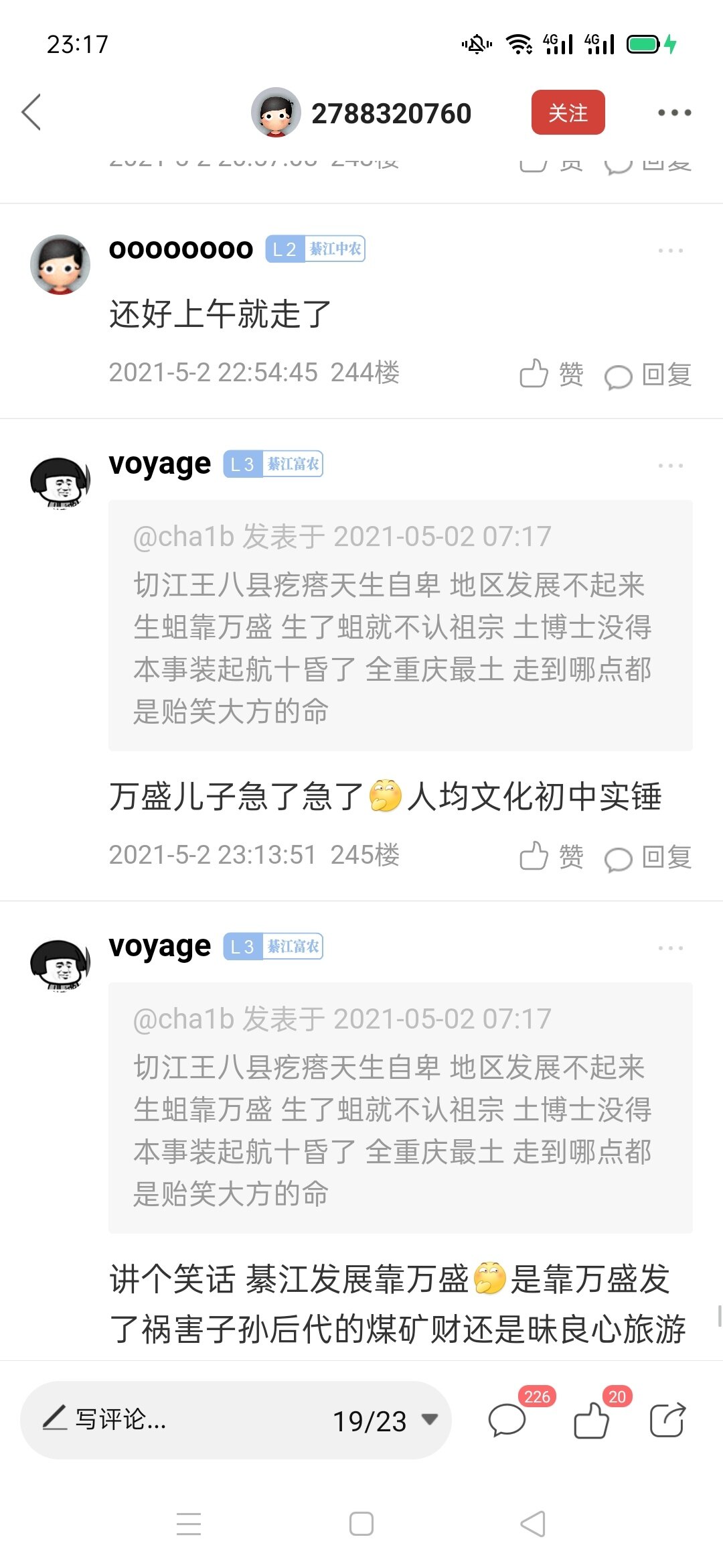 你们说的勒个P娃娃我前几天就注意他了,我正准备日决他个归 儿,结果这几天忙,没得空卵他,虽然我老家不是七江的但是我爱这个地方,说到底我们都是地球村的村民。