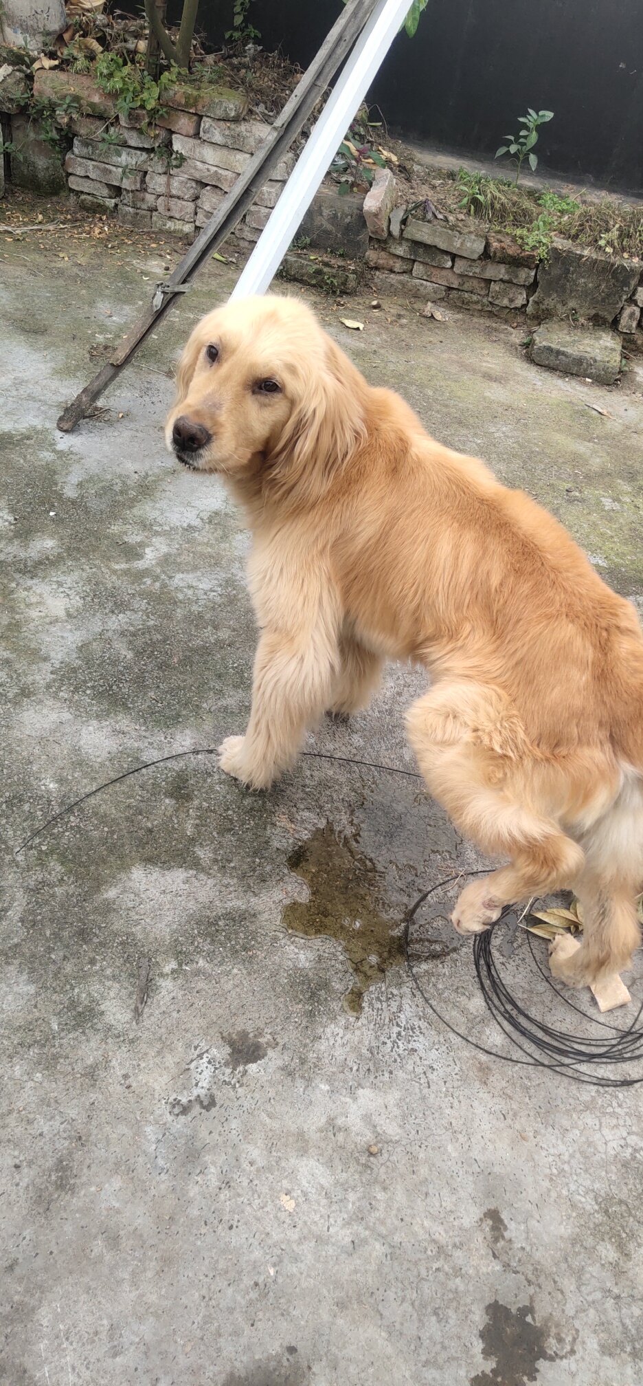 金毛的本领:扔瓶子到綦河里,游过去捡回来杠杠的,还会握手,坐,卧