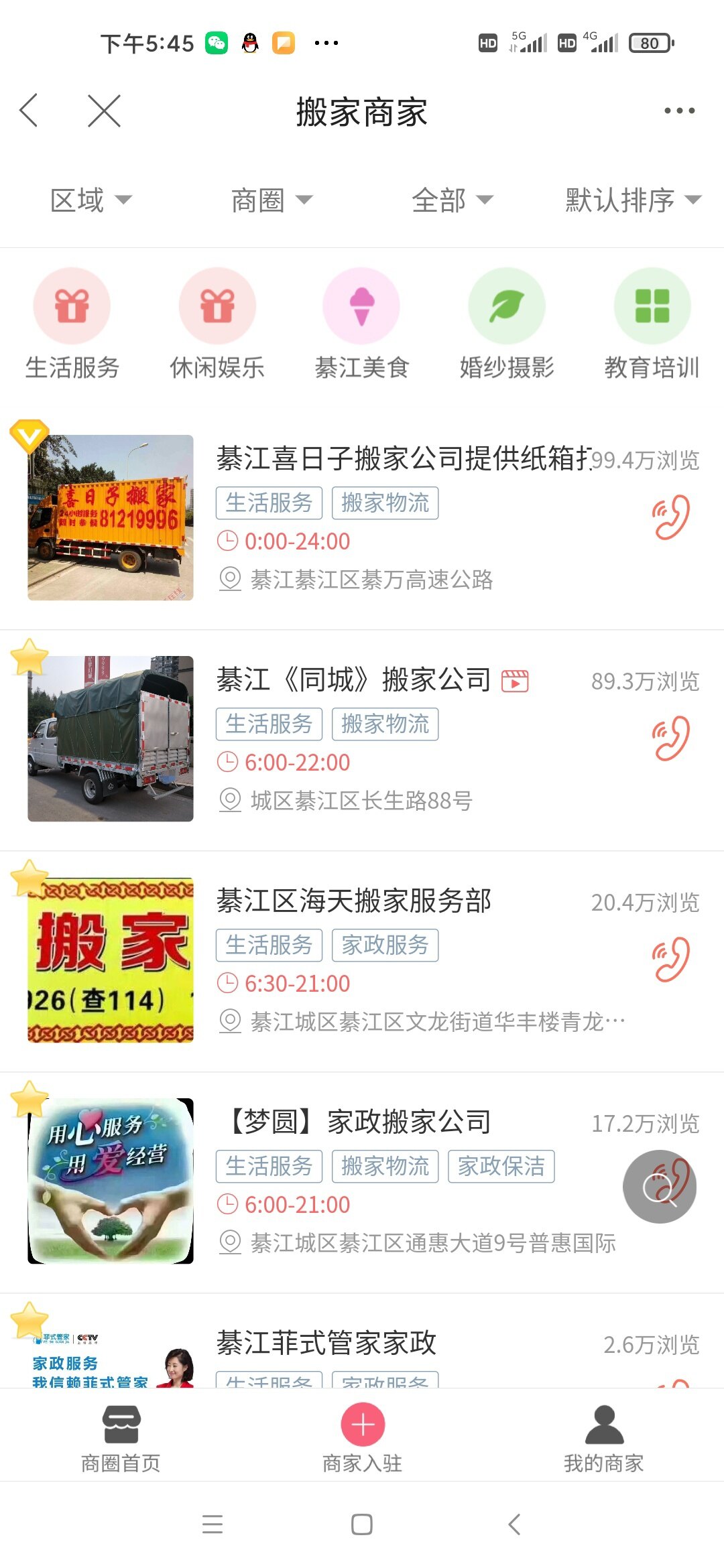 这里进去(找商家)看到搬家
