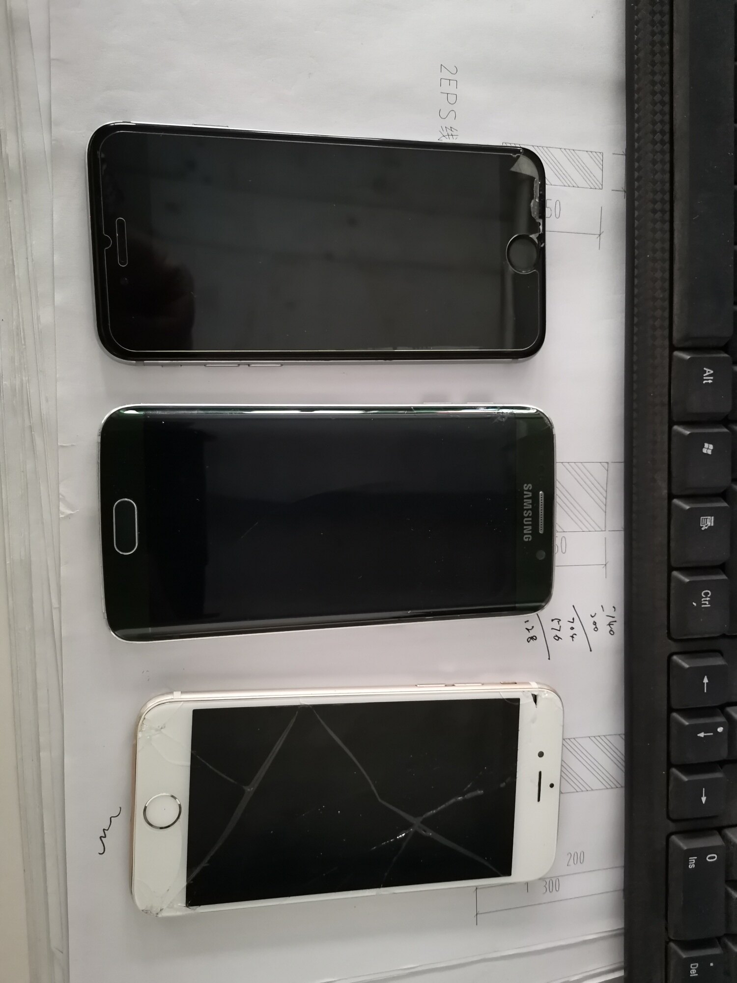金色是苹果6。灰色是苹果6s,另外个是三星s6edge曲屏的。所有功能一切正常,没有一点卡顿。就是屏幕坏了。<br><br>