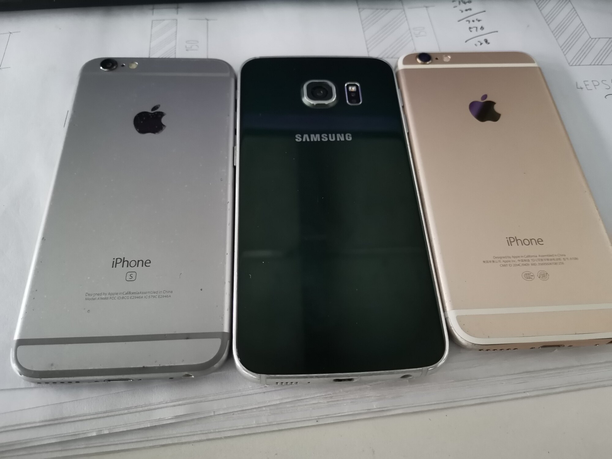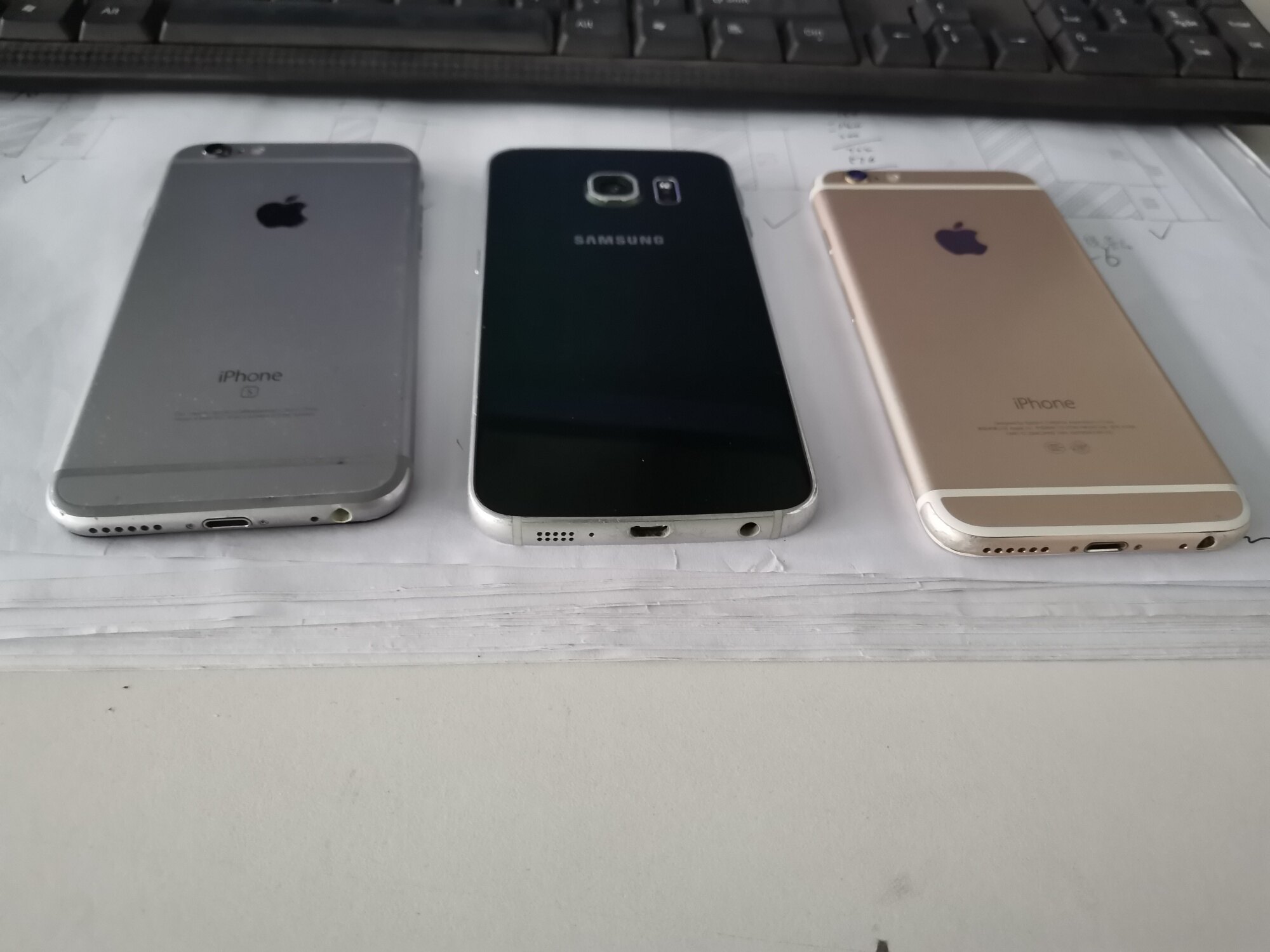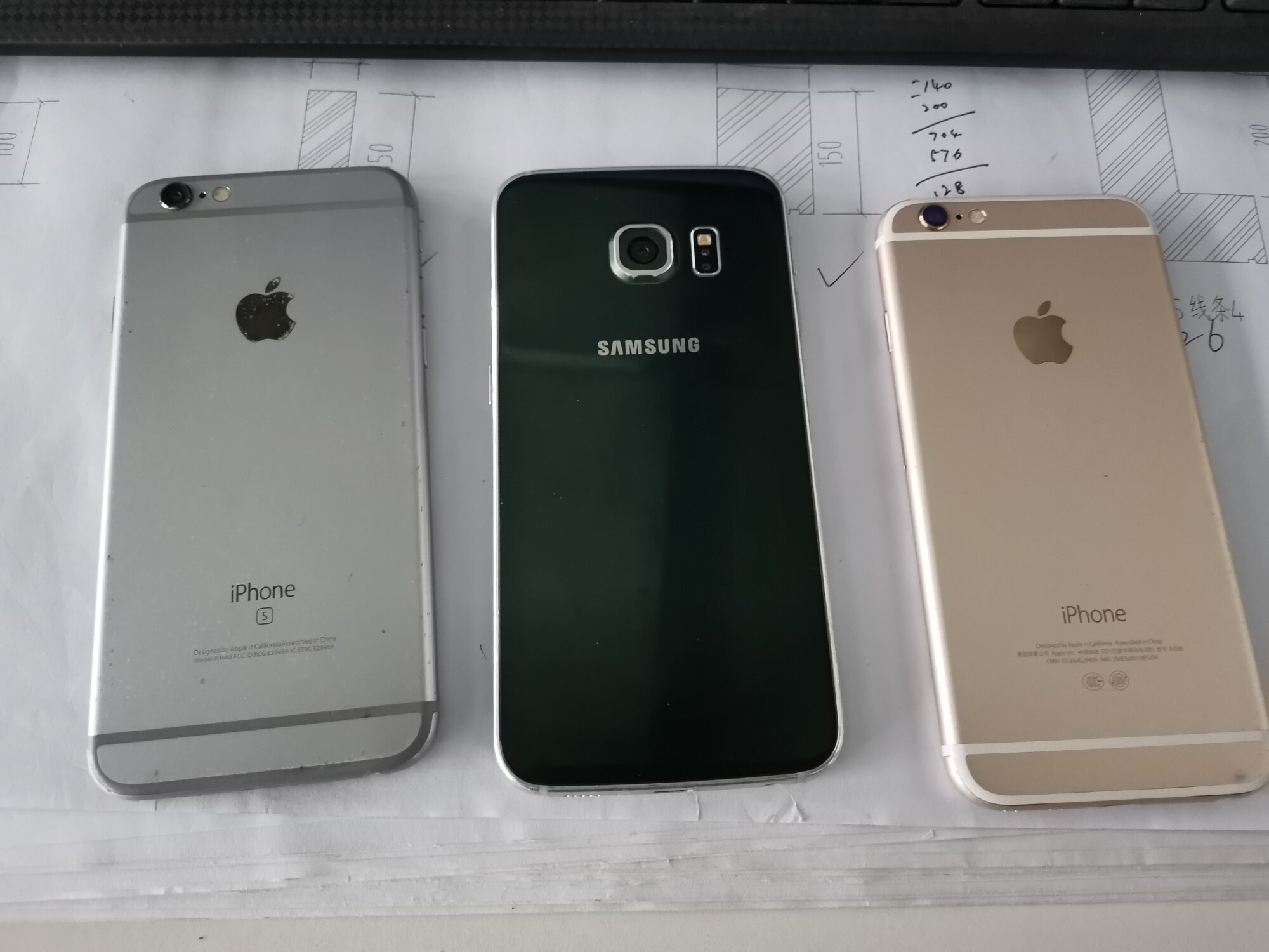 金色是苹果6。灰色是苹果6s,另外个是三星s6edge曲屏的。所有功能一切正常 ...